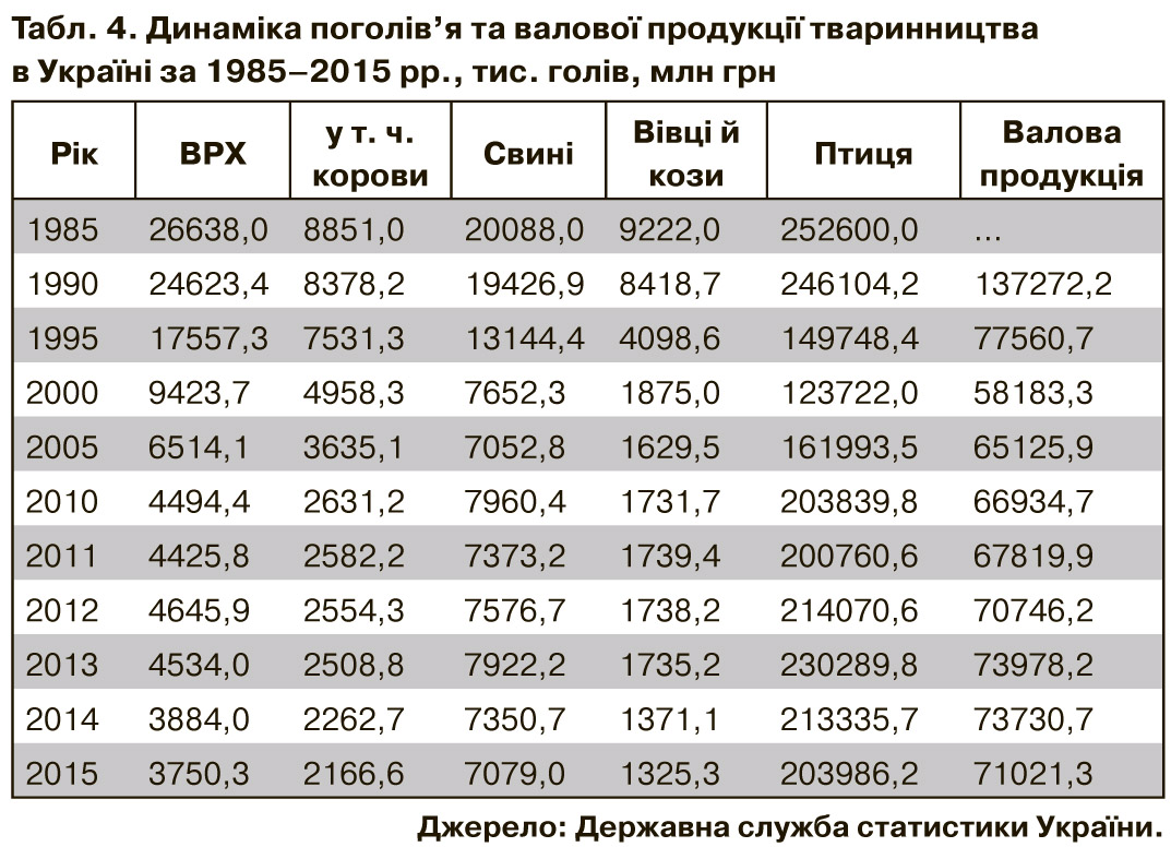 Нинішні показники розвитку тваринництва лише з урахуванням птахівництва можуть певною мірою підпадати під формулу про "зростання з антирозвитком", адже за чисельністю поголів'я корів і свиней вони менші в рази від скромних досягнень1990-го.