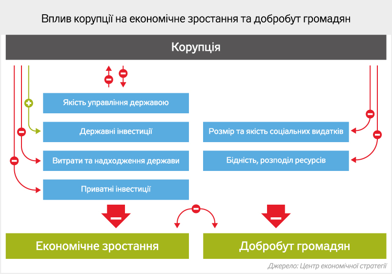 Корупція не просто впливає, вона визначає економічний розвиток України, зачіпаючи всі без винятку процеси та викривлюючи будь-які чудово працюючі в цивілізованому світі стратегії розвитку.