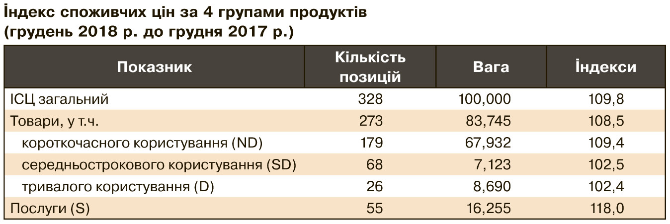 Розрахований у такий спосіб ІСЦ для 2018 р. представлено в таблиці.