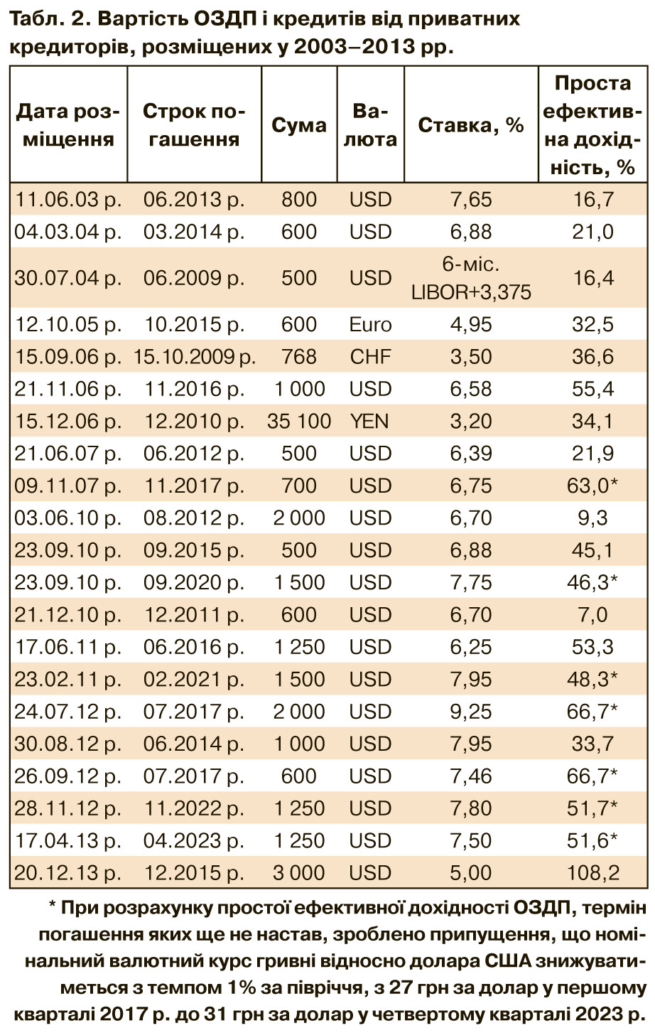 Надання переваги зовнішнім зобов'язанням перед ОВДП у національній валюті може стати фактором зростання боргового навантаження і витрат на його погашення та обслуговування внаслідок недооцінки девальваційних ризиків. Так, упродовж 2008–2016 рр. унаслідок девальвації національної валюти співвідношення держборгу до ВВП зросло на 42,4 процентного пункту. Ефективна ставка ОЗДП і зовнішніх комерційних кредитів, розміщених у 2003–2013 рр., у перерахунку на гривні також виявилась істотно вищою від вартості розміщення ОВДП у національній валюті з терміном обігу понад чотири роки