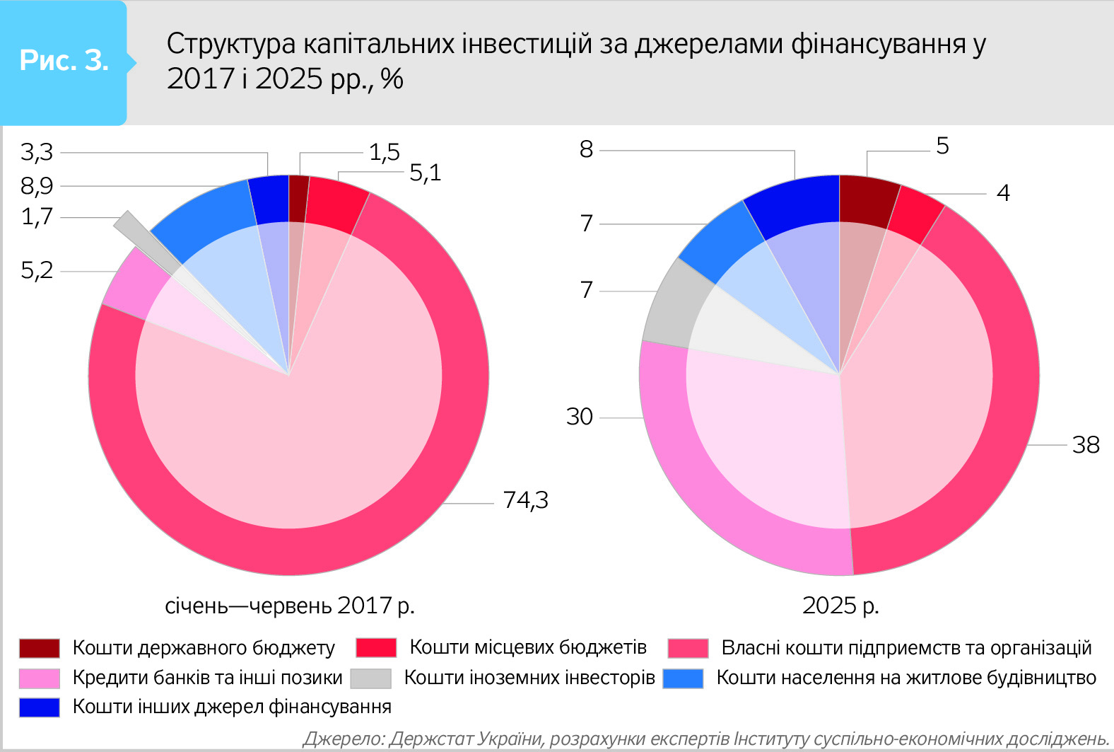 Така структура інвестування консервує інвестиційні перспективи підприємств і свідчить про неефективну державну політику. Інвестори та інші гравці на фінансовому ринку не мають реальних стимулів та інструментів, щоб акумулювати й інвестувати кошти в основний капітал.