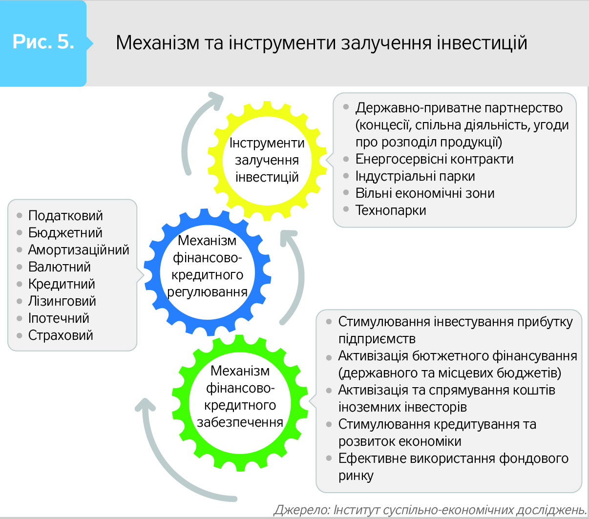 Інструментів стимулювання інвестицій багато - від державно-приватного партнерства, розвитку взаємозв'язків і кластерів в інкубаторах чи економічних зонах до створення інвестиційних партнерських відносин із транснаціональними корпораціями та мультинаціональними банками розвитку. Звісно, це повинно супроводжуватись ефективним регулюванням і врядуванням і впроваджуватися сильними інституціями.
