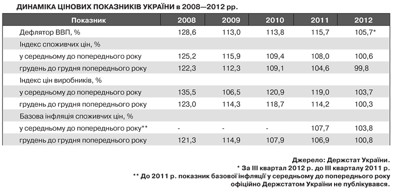 Зокрема, багато хто переймається питанням, а чи не перебрали в Україні міри в питанні зниження інфляції. Адже у 2012 р. споживчі ціни не просто не виросли, а знизилися на 0,2%. Зрозуміло, що для обивателя що нижча інфляція, то краще. Тим часом економічна теорія стверджує, що дефляція (а у випадку країн із економікою, що розвивається, - надто низька інфляція) створює такі самі проблеми для економічного розвитку, як і надто висока інфляція. А тому, на думку багатьох експертів, зворотним боком досягнутого у 2012 р. інфляційного результату є зниження темпів зростання економіки. З розумінням ставлячись до таких застережень, все-таки висловимо свою думку: ні, міри не перебрали. І от чому.