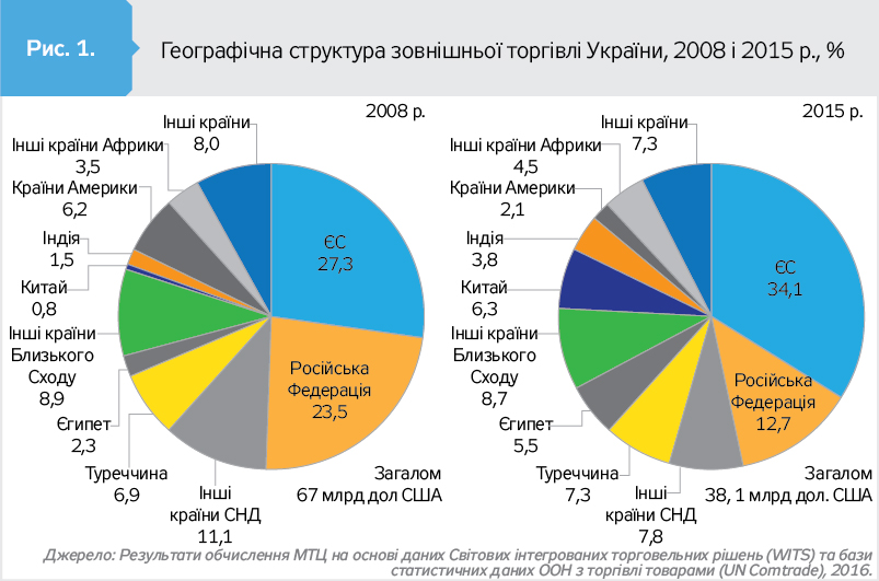 Через військові дії на Сході України та напружені торговельні відносини з РФ, за останні роки значно скоротився експорт металургійної продукції, машинобудування та транспортних засобів. Український експорт, значну частину якого традиційно становили залізо й сталь, тепер переважно представлений продукцією сільського господарства - зерновими та олійними культурами. І на цьому все. Інших статей, що хоча б наближаються за обсягами до зернових і металів, немає. І в останні роки світові ціни на зернові Україну не радують, а частка продукції металургії в експорті продовжує зменшуватися.