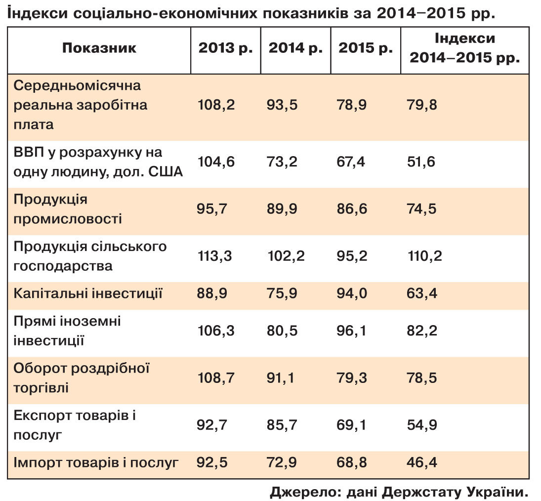 Необхідно зазначити, що на падіння економічних показників вплинули окупація Криму і воєнні дії в Донбасі. Але економіка України перебуває в жалюгідному кризовому стані й без цього.