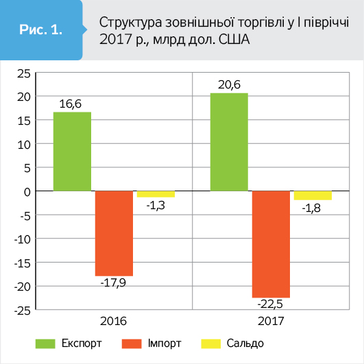 Починаючи з першого кварталу 2017 р. було зафіксовано зростання економіки на 2,4% порівняно з аналогічним обліковим періодом 2016-го. Прогноз уряду до кінця року - сумарне зростання ВВП на рівні 2%. Одним із чинників, завдяки яким було досягнуто стабілізації, є покращення торговельних зв'язків з Європою. Прем'єр-міністр Володимир Гройсман відрапортував про зростання експорту товарів і послуг в ЄС за перші шість місяців поточного року на 22,8% порівняно з аналогічним минулорічним періодом. На сьогодні сумарний обсяг експорту дорівнює 9,4 млрд дол., у тому числі товарів - 8,2 млрд (зростання на 26,1%), послуг - 1,5 млрд (6,4%).