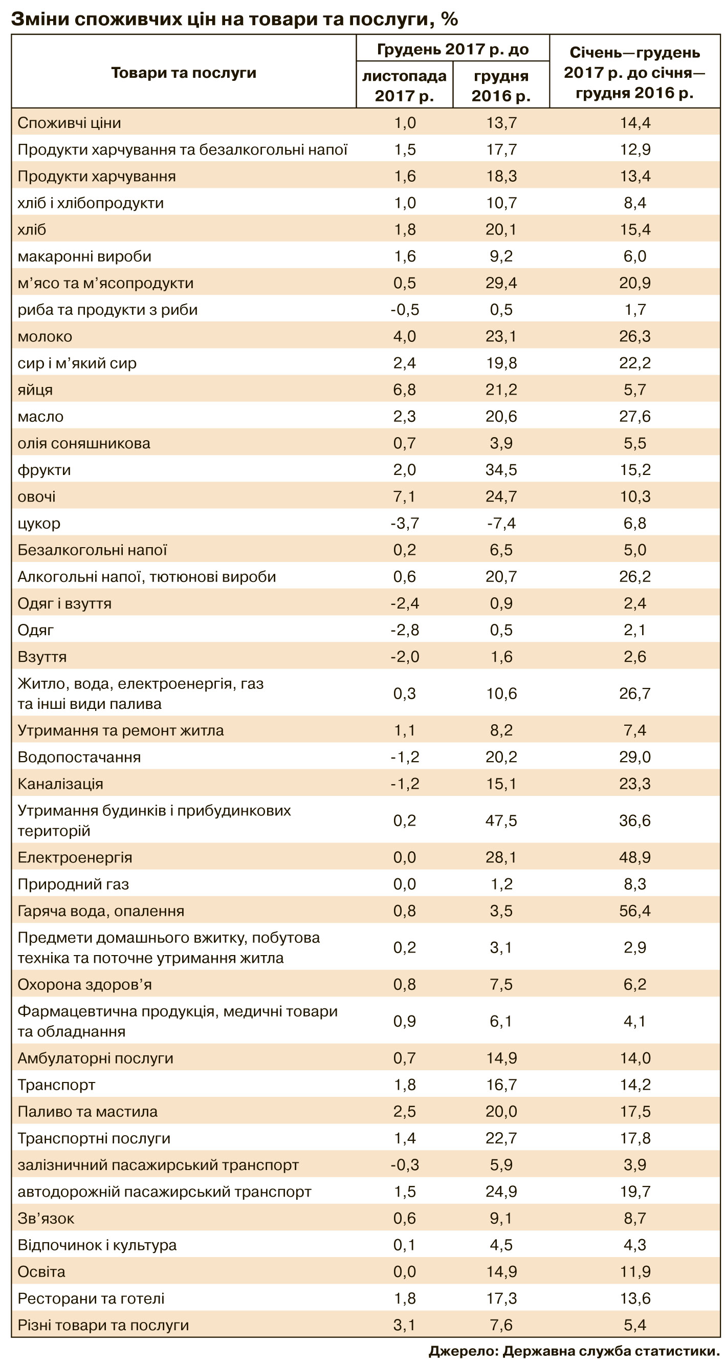 Однак на інфляцію вплинули не тільки вони. Уряд, підвищивши мінімальну зарплату (МЗП) і провівши осучаснення пенсій, поліпшив добробут частини українців. Наприклад, у Києві середня зарплата з 11094 грн у грудні 2016-го зросла до 14035 грн у грудні 2017-го, а середня зарплата по Україні за той самий період - з 6475 до 8777 грн. Одне підвищення МЗП додало інфляції два відсоткові пункти. Та й середня пенсія зросла за рік більш як на 40%.