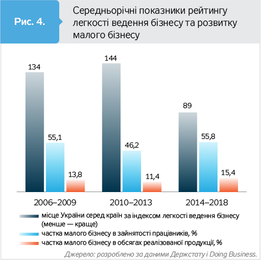 Здавалося б, останнім часом дещо зроблено для полегшення ведення бізнесу. Так, у рейтингу Світового банку в 2019 р. Україна піднялася на 71-ше місце з 152-го - у 2012-му. Але чому економіка, і особливо малий бізнес, у стагнації? Очевидно, тому, що фіскальні індикатори, закладені Світовим банком в оцінку легкості ведення бізнесу, не відображають української реальності. Зі свого боку, бізнес та інвестори реагують не на рейтинг, а саме на цю реальність.
