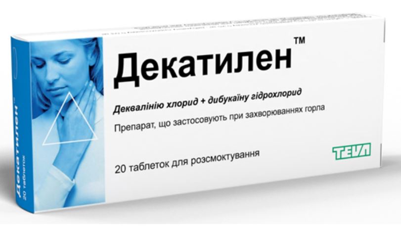 Декатилен – препарат у формі таблеток комбінованого типу з приємним смаком м’яти, який розсмоктують. Діючих компонентів два, кожен виконує свої задачі: анестетик місцевої дії дібукаїну гідрохлорид та антисептик деквалінію хлорид.