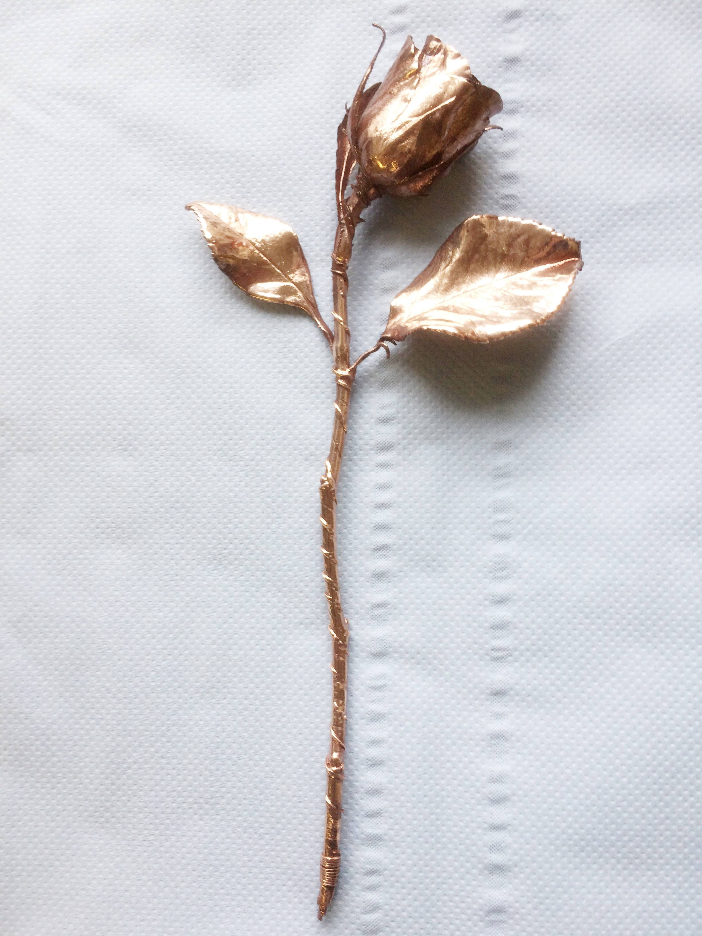 От і троянда, про яку мені розповів Микола, зроблена шляхом осадження на квітку найтоншого шару міді. Усього 0,25-2 мм. Але поверх нього можна ще нанести хром, нікель, срібло, золото або платину. Тобто створити нестандартні ювелірні прикраси й предмети декоративно-прикладного мистецтва з найвищим художнім ефектом.
