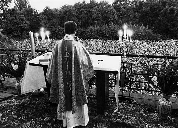 "Костел завжди стає на боці правди. Костел завжди на боці скривджених людей. Сьогодні костел стає на бік тих, у кого забрали свободу, тих, чию гідність намагаються зламати. Костел стає сьогодні на бік робітничої "Солідарності", людей праці, котрих не раз ставили в один ряд із простими злочинцями", - такими словами розпочав свою проповідь Єжи Попєлушко під час меси за репресованих 28 лютого 1982 року, через два з половиною місяці після запровадження воєнного стану в Польщі і початку активних репресій проти учасників "Солідарності". На "Месу за Вітчизну" приходили сотні тисяч людей. На якийсь час ці зібрання стали осередком свободи, який влада не могла заборонити чи розігнати. Єжи Попєлушка запрошували в костели по всій країні, його слухали по напівлегальному радіо, його проповіді розлітались у народі на цитати. А сам священик, за словами свідків, ніколи не піддавався імпульсивності - кожне слово кожної проповіді він ретельно продумував, радячись із близькими. Він відчував свою місію і значення слова Церкви для польського народу в той важкий час.
