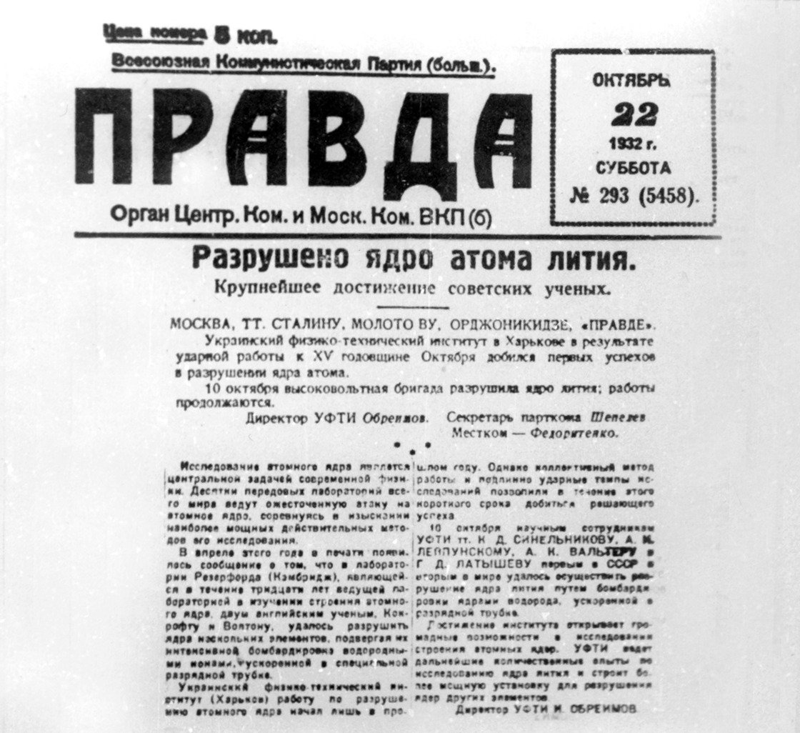 Чому це подвиг? По-перше, на час експерименту сам УФТІ існував лише чотири роки (його засновано 1928-го). Явити світові такий видатний науковий результат за чотири роки існування — само собою нетривіально. По-друге, харків`яни всього кількома місяцями поступилися англійцям із Кавендіської лабораторії — учням Ернеста Резерфорда Джону Кокрофту й Ернесту Уолтону, які першими у світі штучно розщепили ядро. За цю роботу англійські вчені згодом були удостоєні Нобелівської премії в галузі фізики за 1951 рік. Але ж харків′яни не копіювали англійців. Ідея експерименту взагалі належить Георгію Гамову, який, до речі, народився в Одесі.