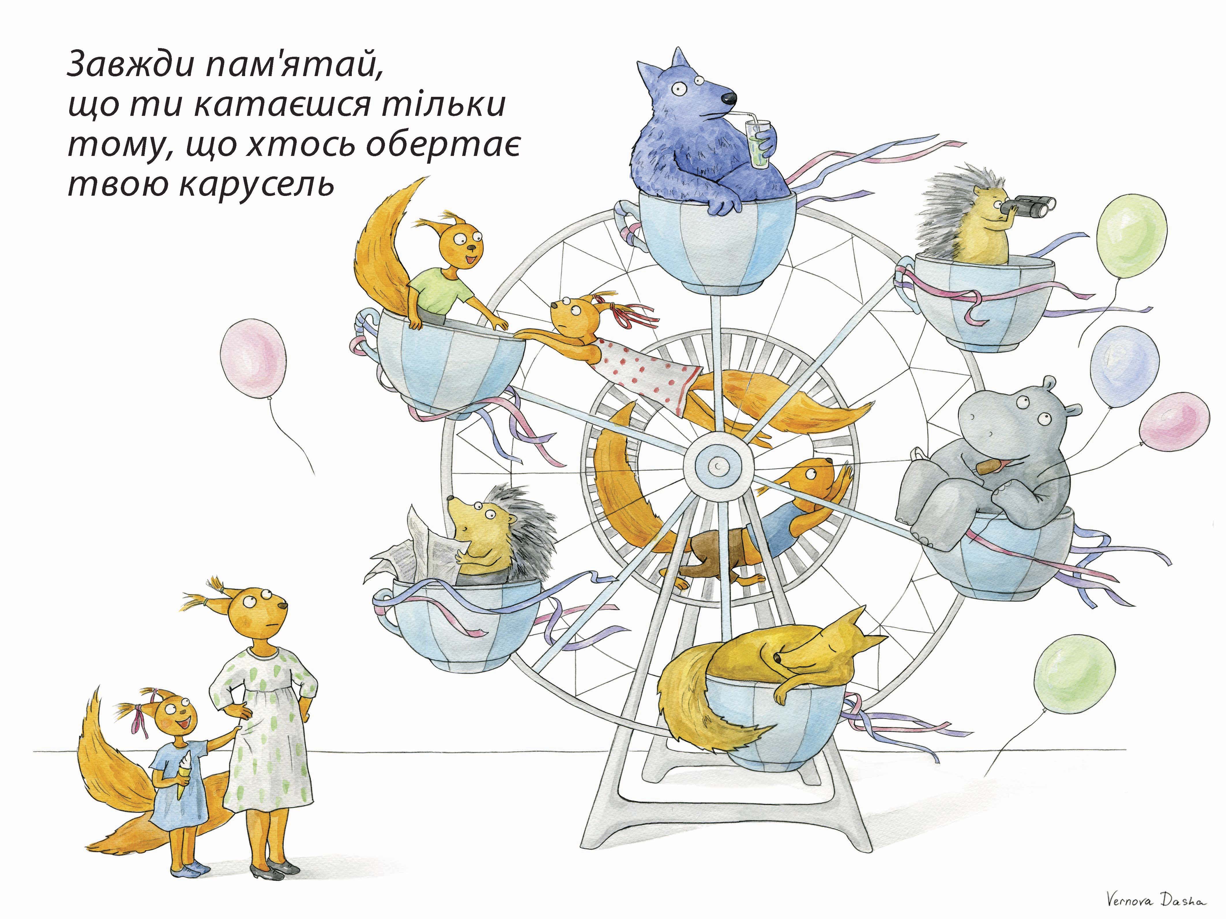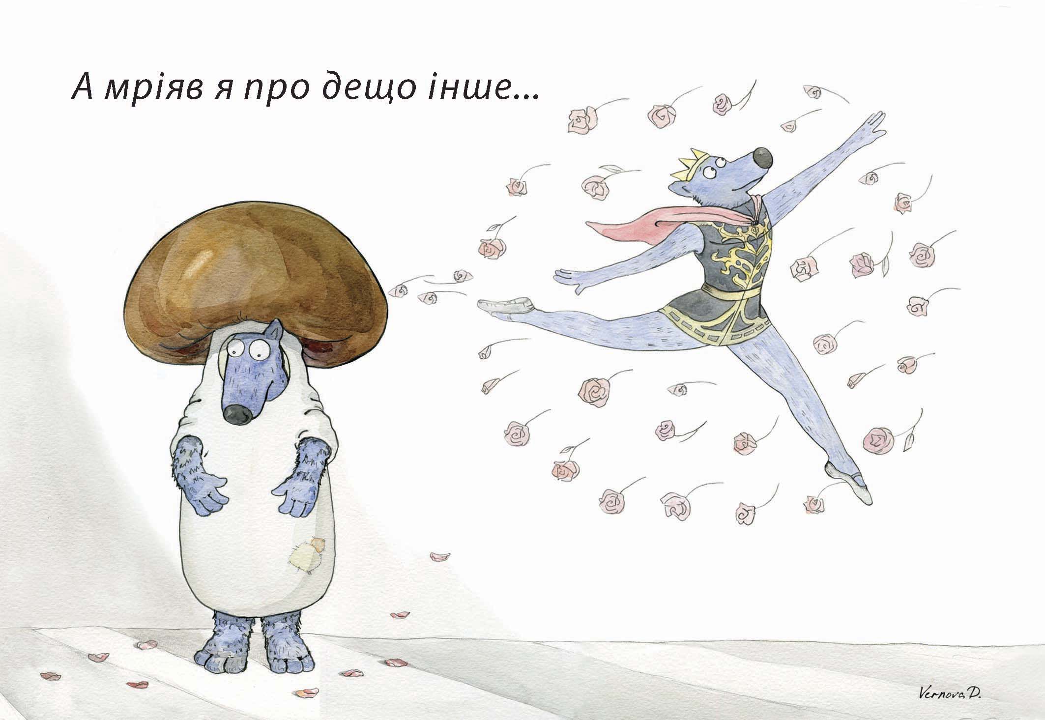 - Чіткої відповіді на це запитання у мене, мабуть, немає. Коли з'явилися малюнки про вовка, раптом виявилося, що вони припали до душі багатьом дорослим. Але малюнки існують не самі по собі, до них є підпис - пропозиція поміркувати над якоюсь певною ситуацією. Швидше за все, цікавий цей стик. А дітям цікаві картинки й історії, які придумують до них дорослі, гортаючи книжку разом із дитиною. Батьки, бабусі й дідусі пишуть мені, що діти просять розповісти історію. Діти бачать картинку й вирішують, що за нею є якась історія, а дорослі починають фантазувати й придумувати казку на основі малюнка. При цьому важливо, що для кожної конкретної дитини - це своя історія, її придумують близькі дитині люди, з урахуванням її розвитку, інтересів, віку, зі знанням того, який саме повчальний висновок потрібен у цю хвилину. Саме так я й уявляла собі читання цієї книжки дітьми - як спільне читання з дорослими. І, мені здається, це вийшло.