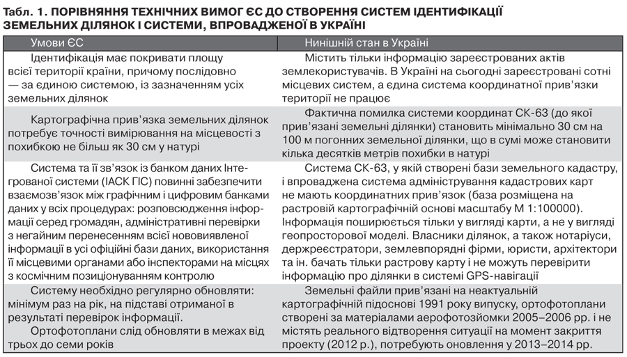 Відповідно до чинного законодавства, у країні має працювати повноцінна геоінформаційна система, яка містить дані не тільки про площі окремих ділянок і їхнє цільове призначення, а й зокрема про кількісну і якісну характеристики земель, про їхню оцінку, розподіл земель між власниками й користувачами тощо. Такої інформації в українському Державному кадастрі немає. Але це, схоже, керівництво країни повністю влаштовує.