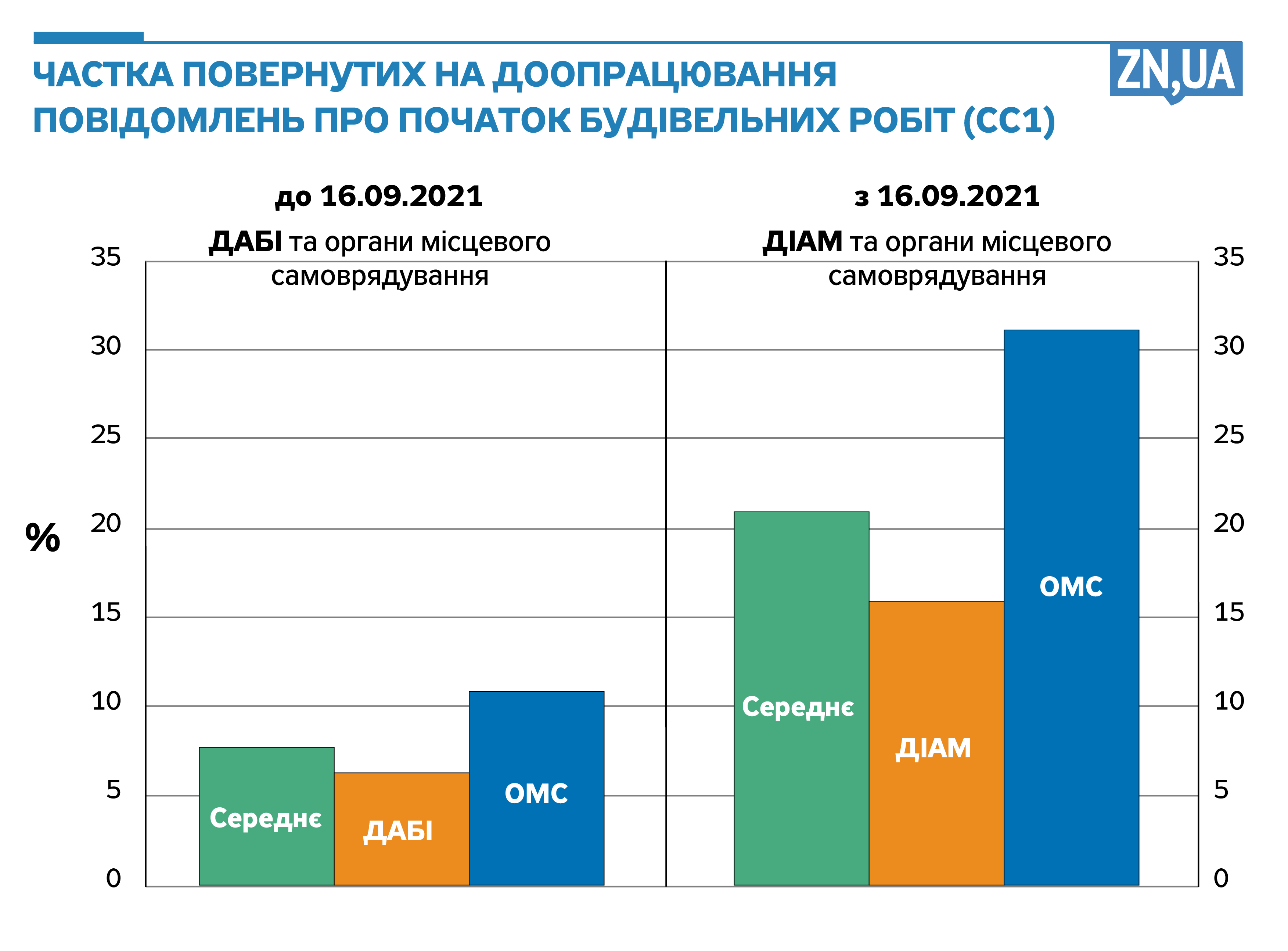 Із початком роботи ДІАМ відбулося прямо протилежне очікуванням: частка незаконних повернень повідомлень на доопрацювання в ДІАМ наразі в середньому у 2,5 разу перевищує показники корумпованої ДАБІ, а в органах ДАБК при ОМС частка відмов підскочила втричі.