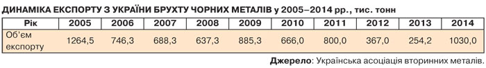Згідно з офіційними статистичними даними, у 2014 р. Україна скоротила експорт металопродукції в натуральному вираженні на 7,6% порівняно з 2013-м - до 24,3 млн т, у вартісному вираженні - на 11,3%, до 12,6 млрд дол. Імпорт 2014 р. становив 1,4 млн т металопродукції на суму 1,3 млрд дол., 2013-го - 2,2 млн т на 2,2 млрд дол. Очевидно, що за рахунок збільшення експорту металобрухту Україна може частково компенсувати зниження надходжень валюти через падіння експорту продукції вітчизняних металургів.