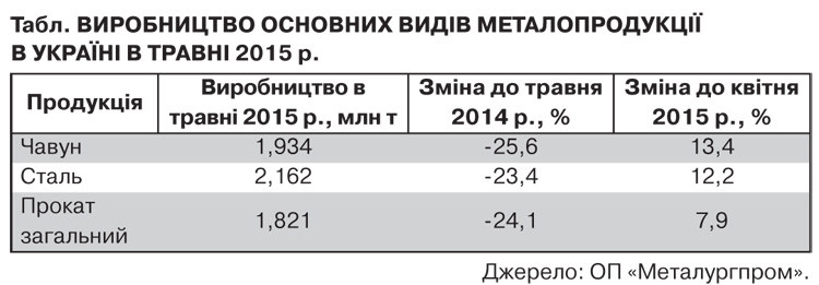 Із січня по травень 2015 р. вітчизняні підприємства досі ще показують зниження виплавки сталі - на 28% порівняно з аналогічним періодом минулого року (9,2 млн т). Падіння на третину не дивне, адже на початку 2014-го металурги працювали із завантаженням, яке зараз здається високим, у відносно "мирний" тоді час. Хоча тоді й цього здавалося мало. Кризу в металургії передбачали, очікування складних часів витало в повітрі. На глобальному ринку потужностей значно більше, ніж попиту. Але дехто припускав, що причинами зниження виробництва можуть стати якраз трагічні події в Україні, які почалися після анексії Криму.