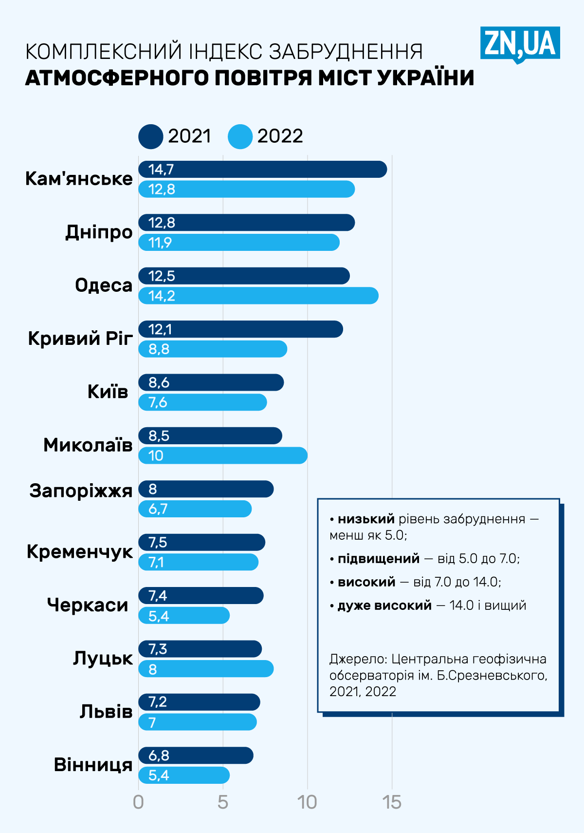 “Навіть попри помітне скорочення викидів промисловості та транспорту, концентрація шкідливих речовин в повітрі наших міст перевищує безпечні показники. Причому перелік проблемних речовин, які отруювали те чи інше місто у 2022 році, практично збігається з профілем забруднення, який спостерігався в «довоєнному» 2021-му. Це наштовхує на невтішний висновок, що основні джерела викидів залишилися ті самі. Для промислово навантажених міст – це викиди немодернізованих підприємств”, – вважає представник SaveDnipro.