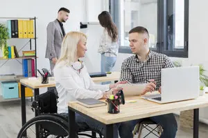 - за потреби працівникам з інвалідністю надається допомога персонального асистента або соціальний супровід на робочому місці;