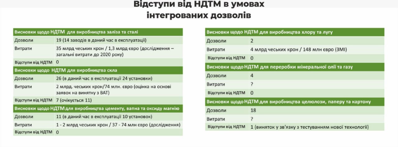 У промисловості Чехії було десять років, щоб підготуватися до запровадження НДТМ (BAT). Українська промисловість теж матиме термін для підготовки близько 12 років.