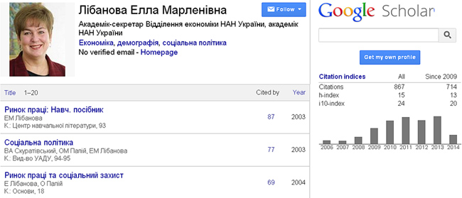 Сервіс Google Scholar "Бібліографічні посилання" дозволяє вченим оприлюднювати результати своїх інтелектуальних напрацювань у вигляді так званих бібліометричних портретів, де представлена сфера їхньої наукової діяльності, впорядковані списки публікацій, індекси та діаграма цитувань, коло наукових інтересів тощо. У цілому бібліометричний портрет можна розглядати як візитівку вченого в Інтернеті. Згаданий сервіс затребуваний - на жовтень 2014 р. з його використанням створено понад 3 000 портретів українських дослідників. Серед них і відомі всьому світові вчені: академіки В. Вернадський, М. Боголюбов, В. Глушков (їхні бібліометричні портрети створювали учні й послідовники), і початківці, які мають по кілька публікацій. Отже, вже тепер можна, у першому наближенні, отримати уявлення про науковий потенціал країни. Враховуючи усталену тенденцію до зростання кількості бібліометричних портретів учених, слід розраховувати на появу більш достовірної, в статистичному плані, картини стану науки.
