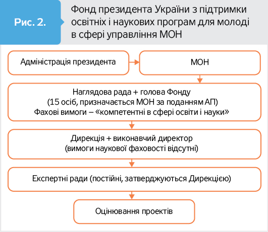 У Положенні не прописано механізмів контролю за діяльністю Фонду президента з боку інших міністерств чи відомств, окрім МОН. Фонд має погоджувати з МОН навіть пріоритетні напрями діяльності та напрями грантової підтримки, порядок конкурсного відбору та фінансування проектів, порядок проведення та методичне забезпечення експертиз.