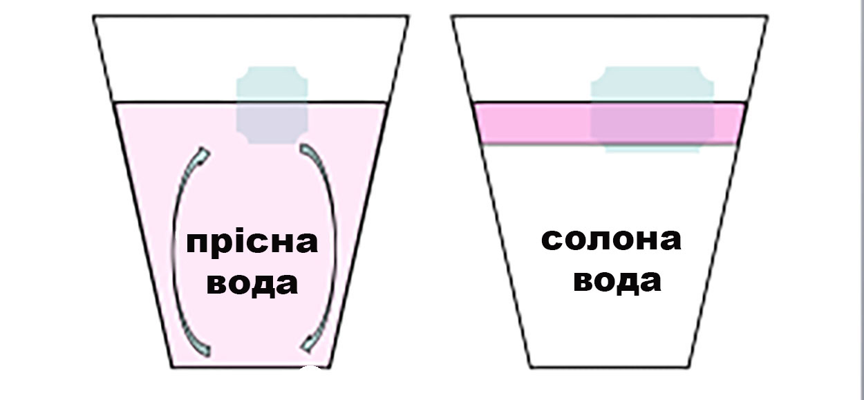 Рис. 3. Експеримент із таненням льоду у прісній та солоній воді