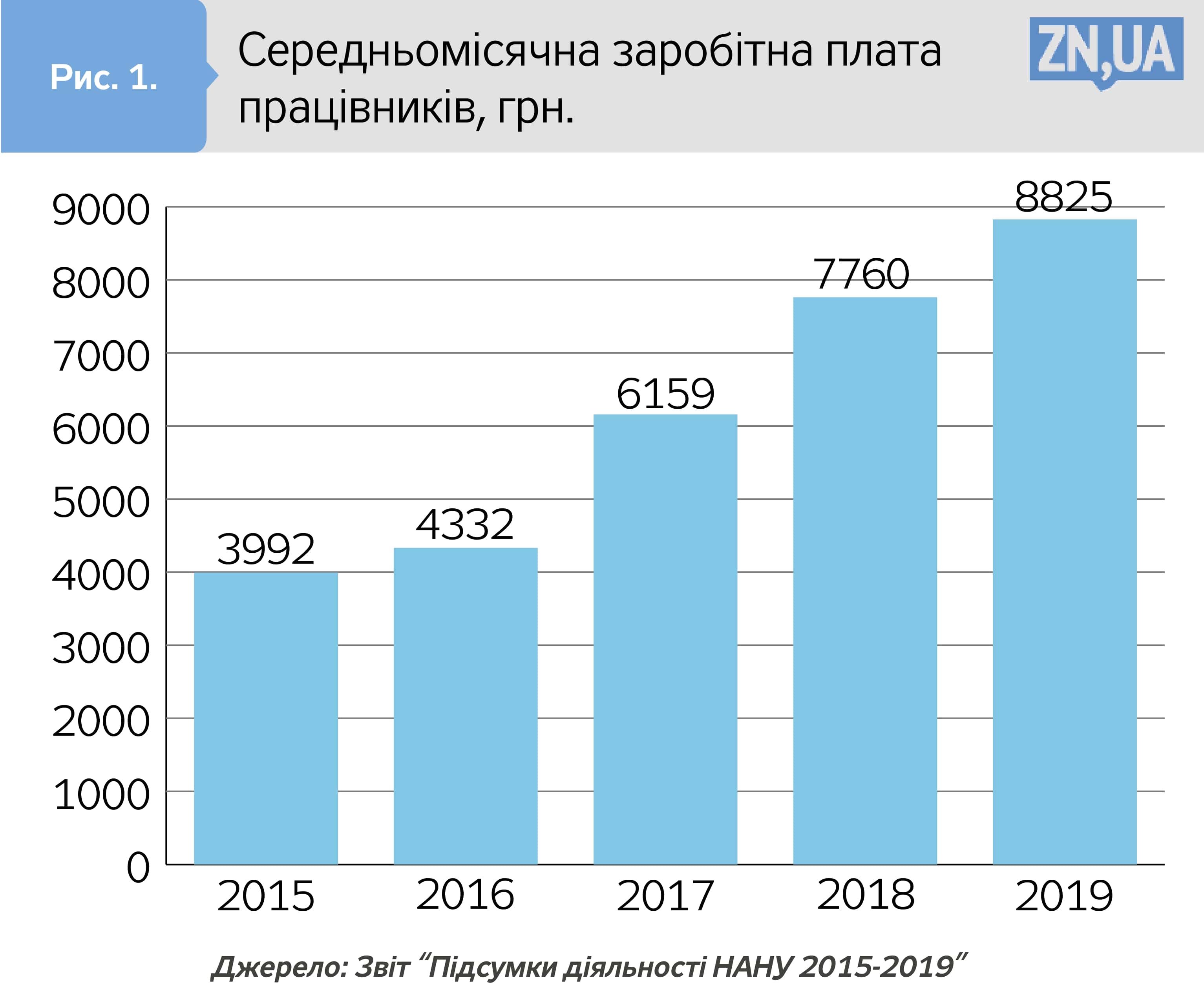 За даними 2019 року, середня зарплатня вченого становить 290 євро (8 тис. грн, хоча ця цифра може змінюватися, залежно від інституту, але маємо ще врахувати, що майже всі установи НАНУ працюють неповний робочий тиждень, і сума зарплатні в багатьох значно нижча), попри середню зарплату по Україні близько 11 тис., а по Києву - 16 тис. грн.