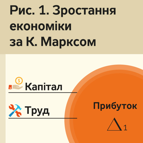 У минулому столітті зростання як економіки в цілому, так і окремих компаній задовільно пояснювала економічна теорія К.Маркса, згідно з якою загальна вартість, а в підсумку прибуток, створювалися працею (робочою силою) і фізичним капіталом (знаряддями праці, фінансами тощо) (див. рис.1).