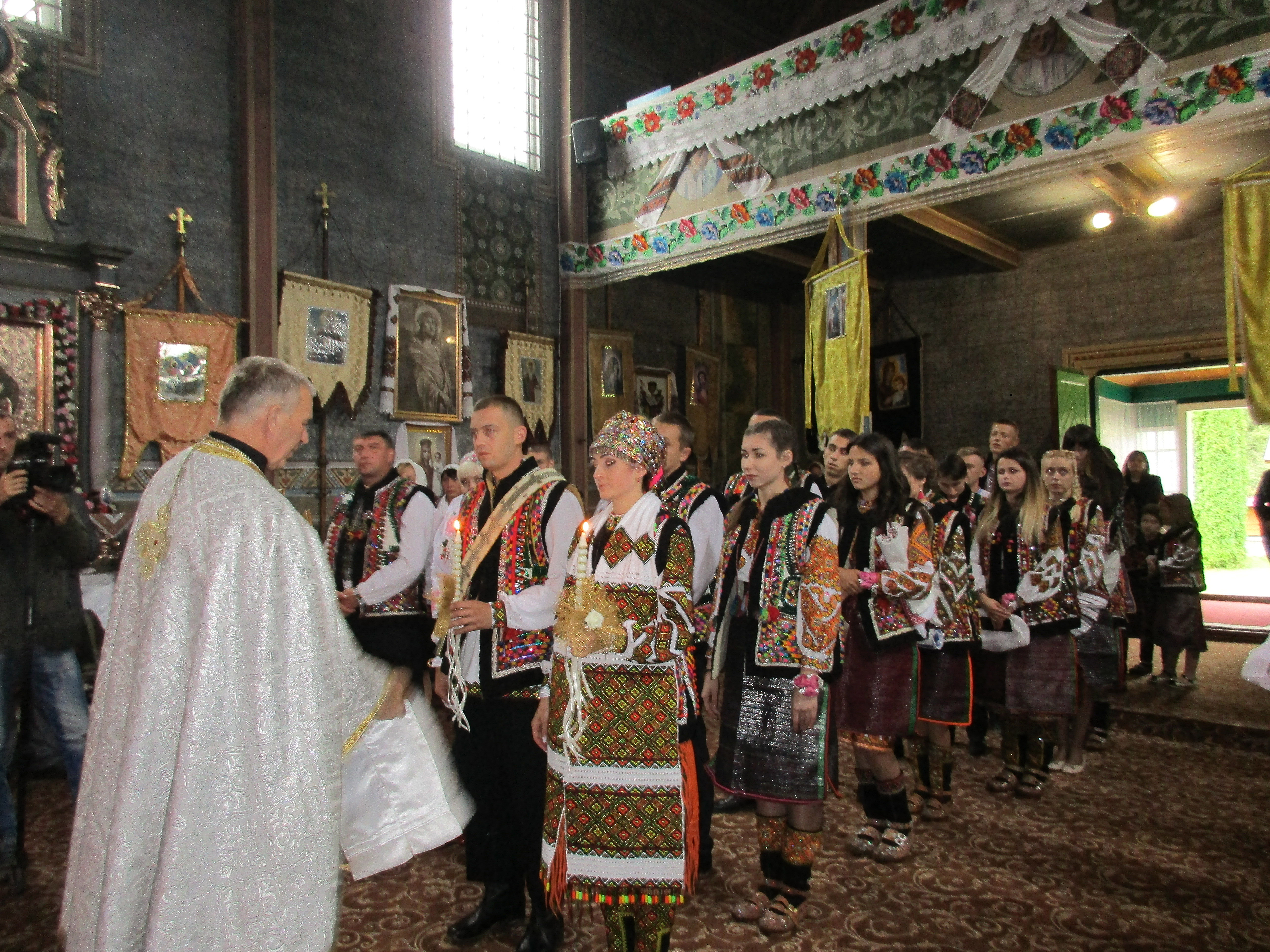 Біля церкви села Ільці Верховинського району Івано-Франківської області зупинився весільний кортеж. З нього вийшли люди у святошній гуцульській одежі: все, від капелюхів і вінків на головах і аж до постолів на ногах, зшито, вишито, вичинено, оздоблено власними руками. Гуцульське весілля! Обряд, який передається від покоління до покоління майже у первозданному вигляді. Майже - бо таки була тривала пауза в традиції: за радянських часів, коли все було уніфіковано й стандартизовано, вбране в біле і чорне й підігнано під робочий графік чужої тітки в загсі. Майже - бо час таки дещо змінив у традиції. Раніше молодий і молода їхали до церкви поодинці й на конях - бо ж гори, кручі, бездоріжжя. А нині тут авта - одне від іншого крутіші. Зате ляльки на них теж у гуцульських строях. Як і гості на весіллі. Все яскраве, красиве, радісне. Все у передчутті свята!