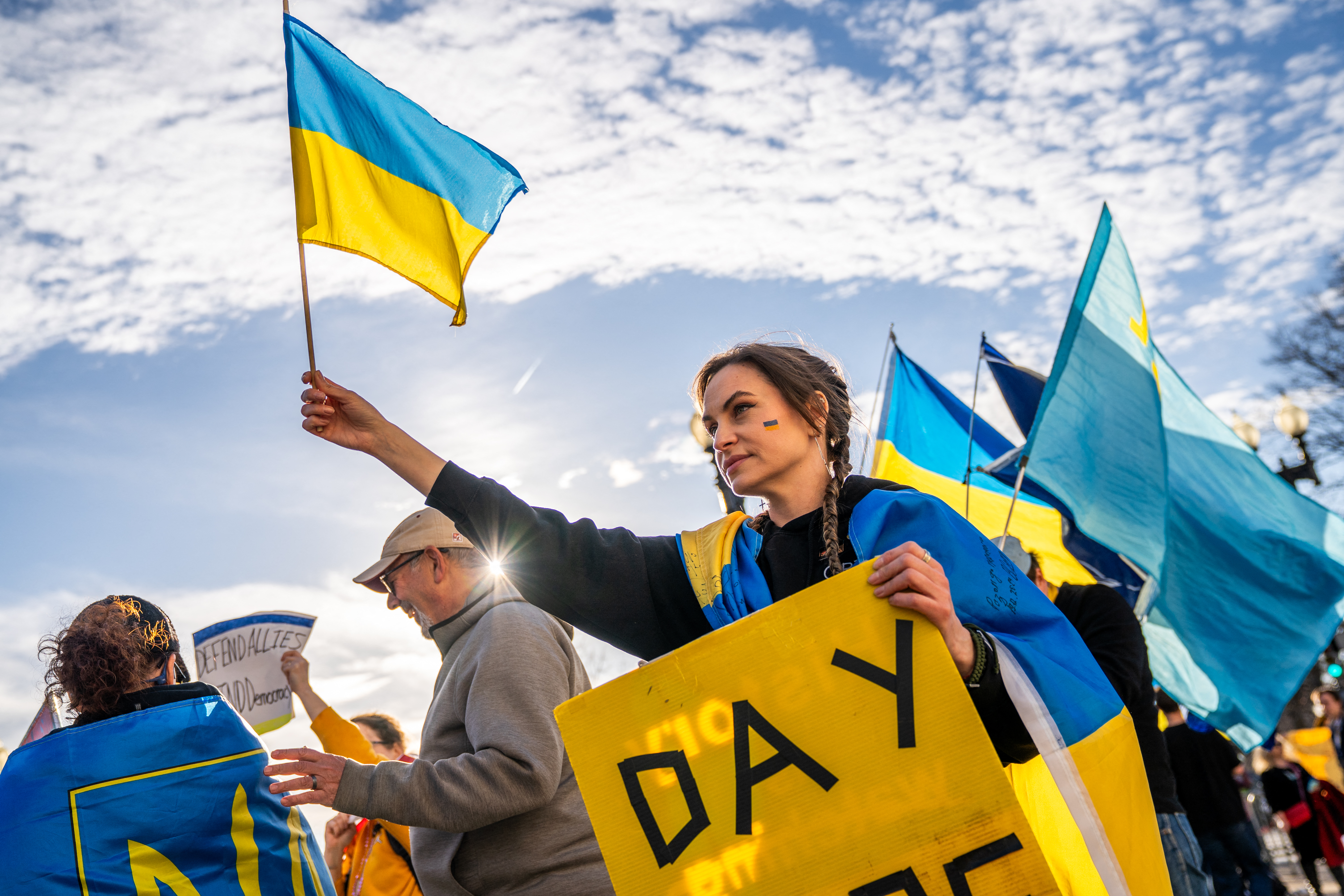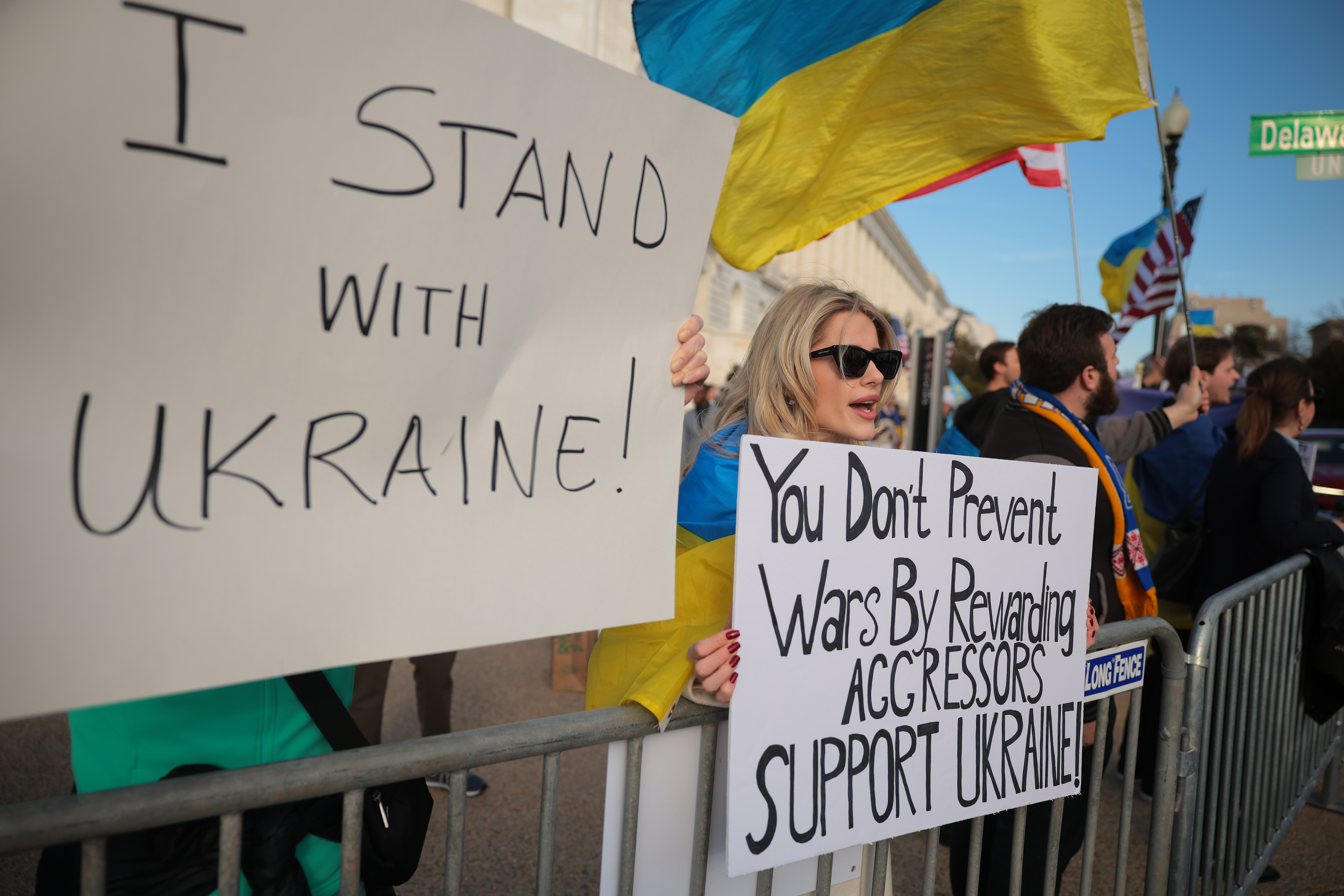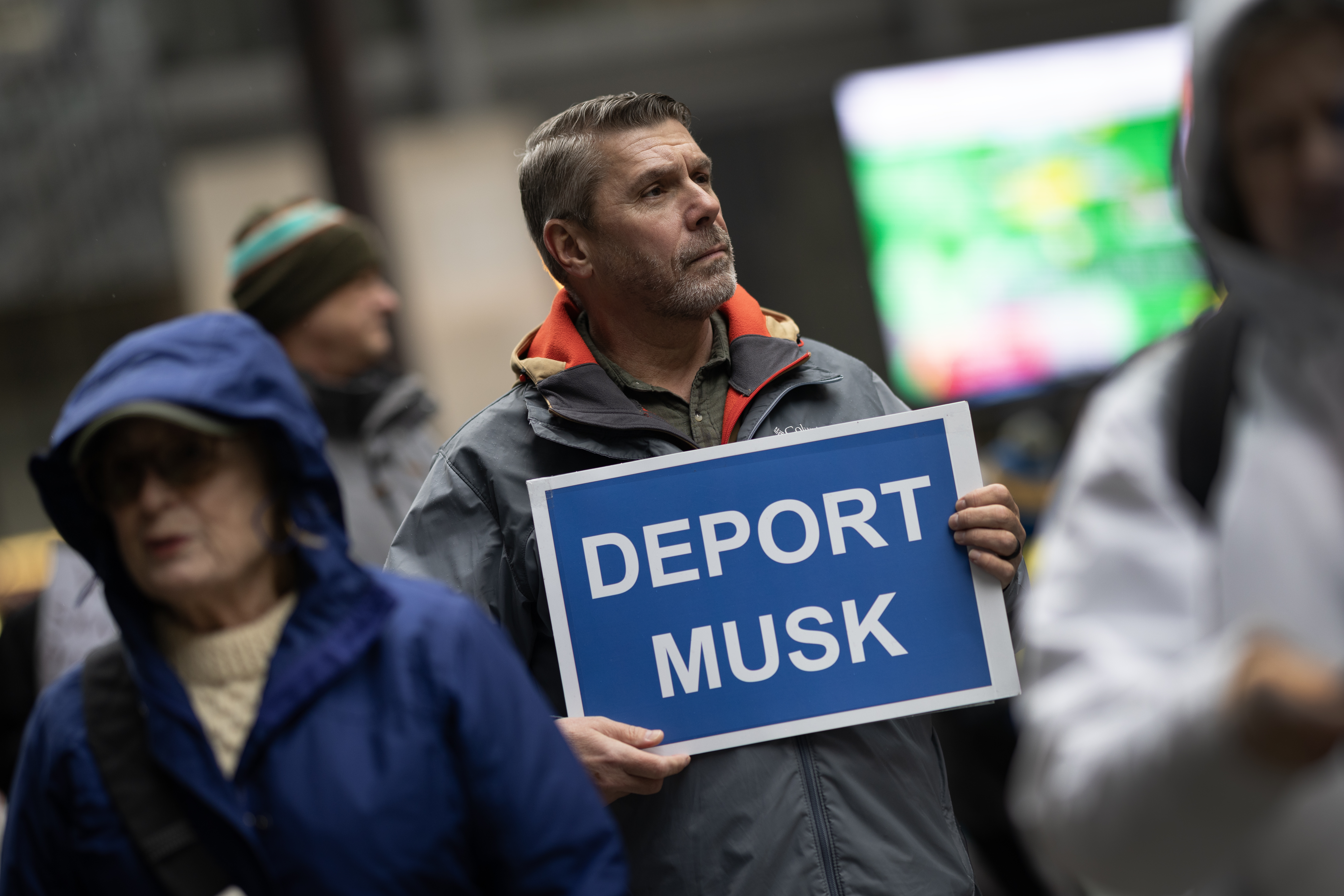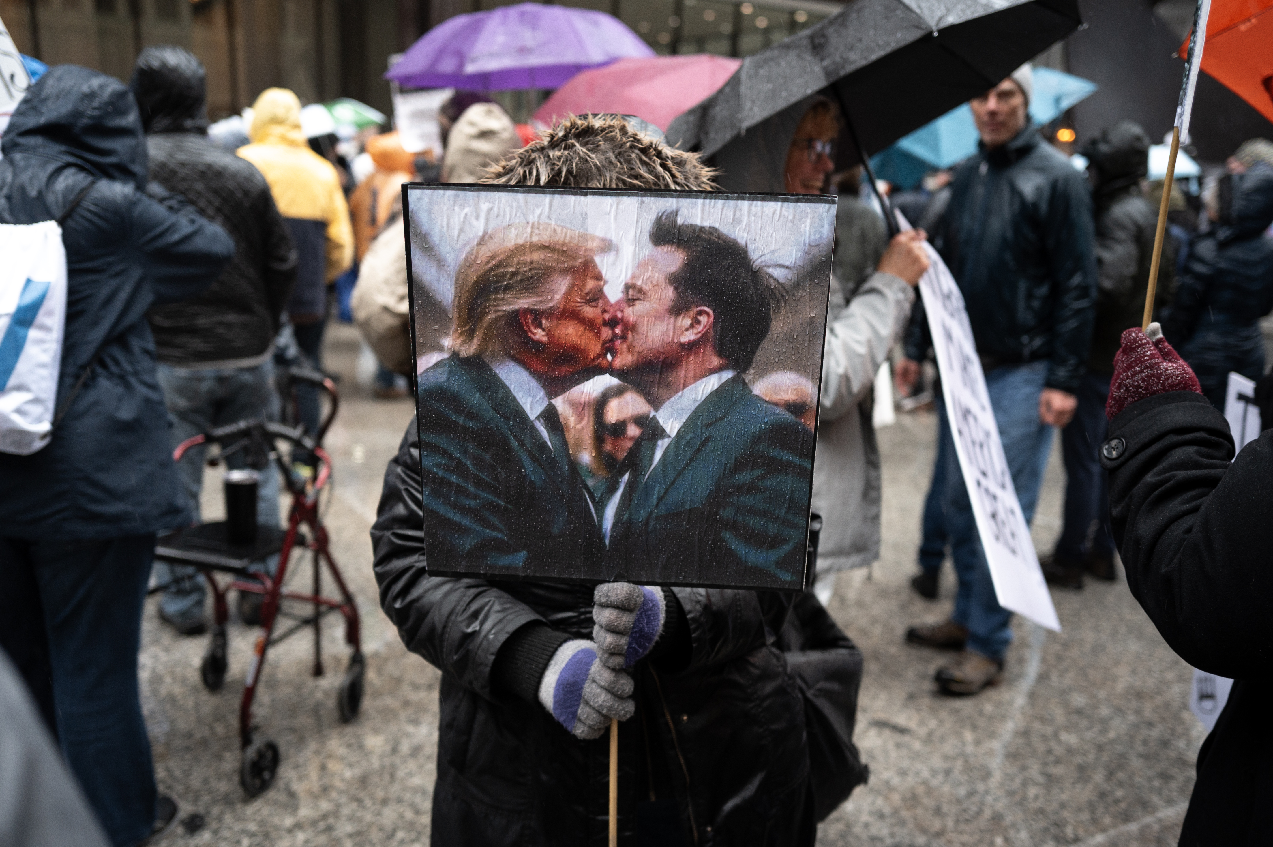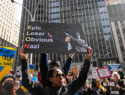 Окрім критики президента та Ілона Маска, учасники підтримували Україну та її лідера Володимира Зеленського, закликаючи до посилення допомоги країні.