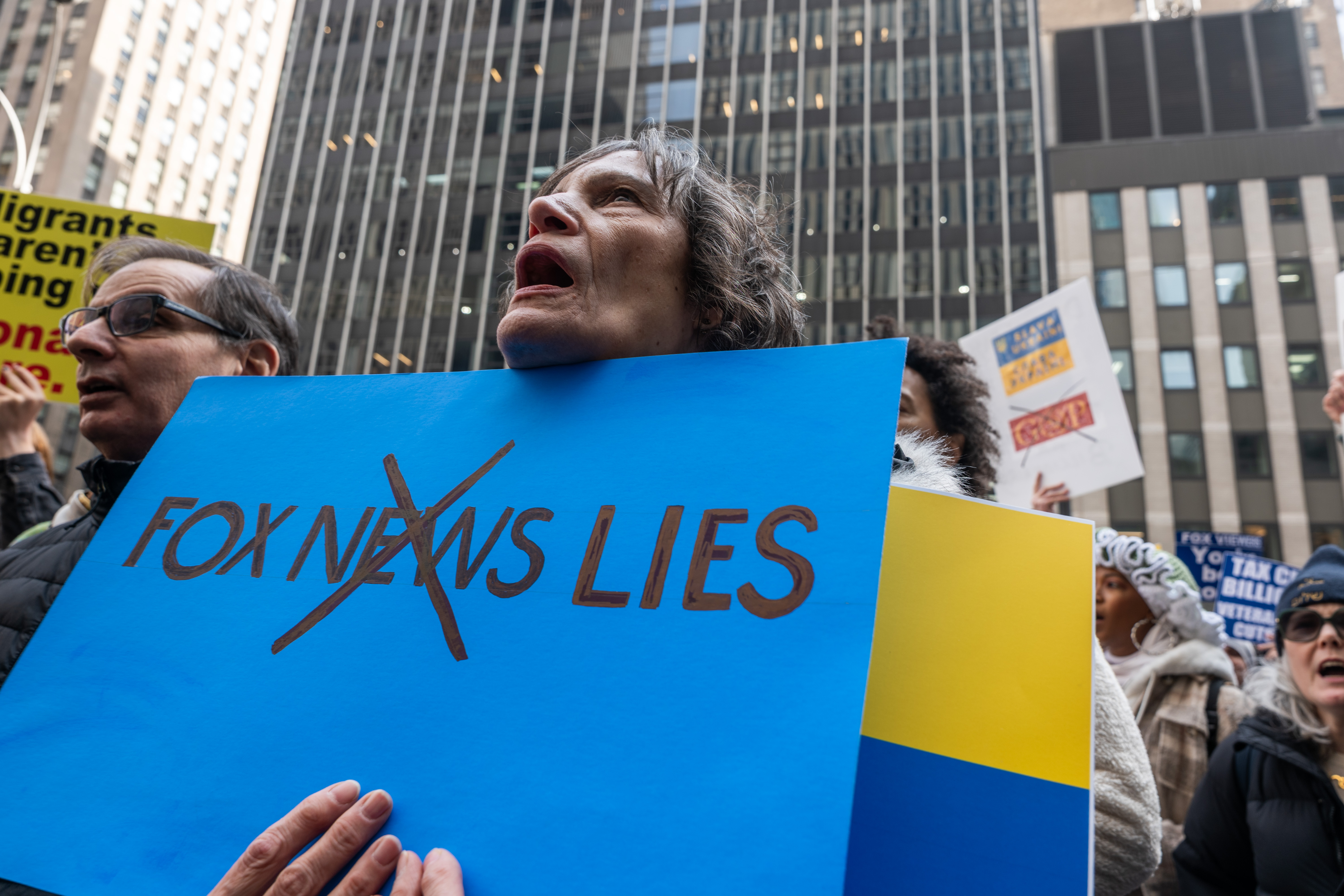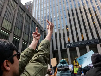 У Нью-Йорку велика група протестувальників зібралася біля штаб-квартири News Corporation, материнської компанії Fox News.