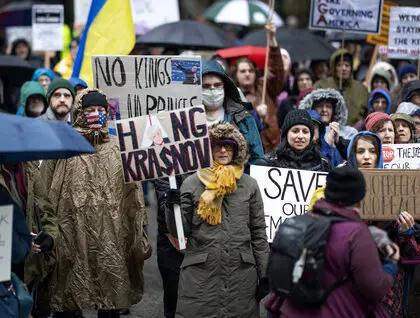 Акції протесту не вщухають, і вчора у Вашингтоні натовп зібрався перед будівлею Капітолію напередодні виступу президента на спільному засіданні Конгресу США. Протестувальники вимагали змін у політиці адміністрації Трампа, зокрема щодо підтримки демократії та зовнішньополітичного курсу.