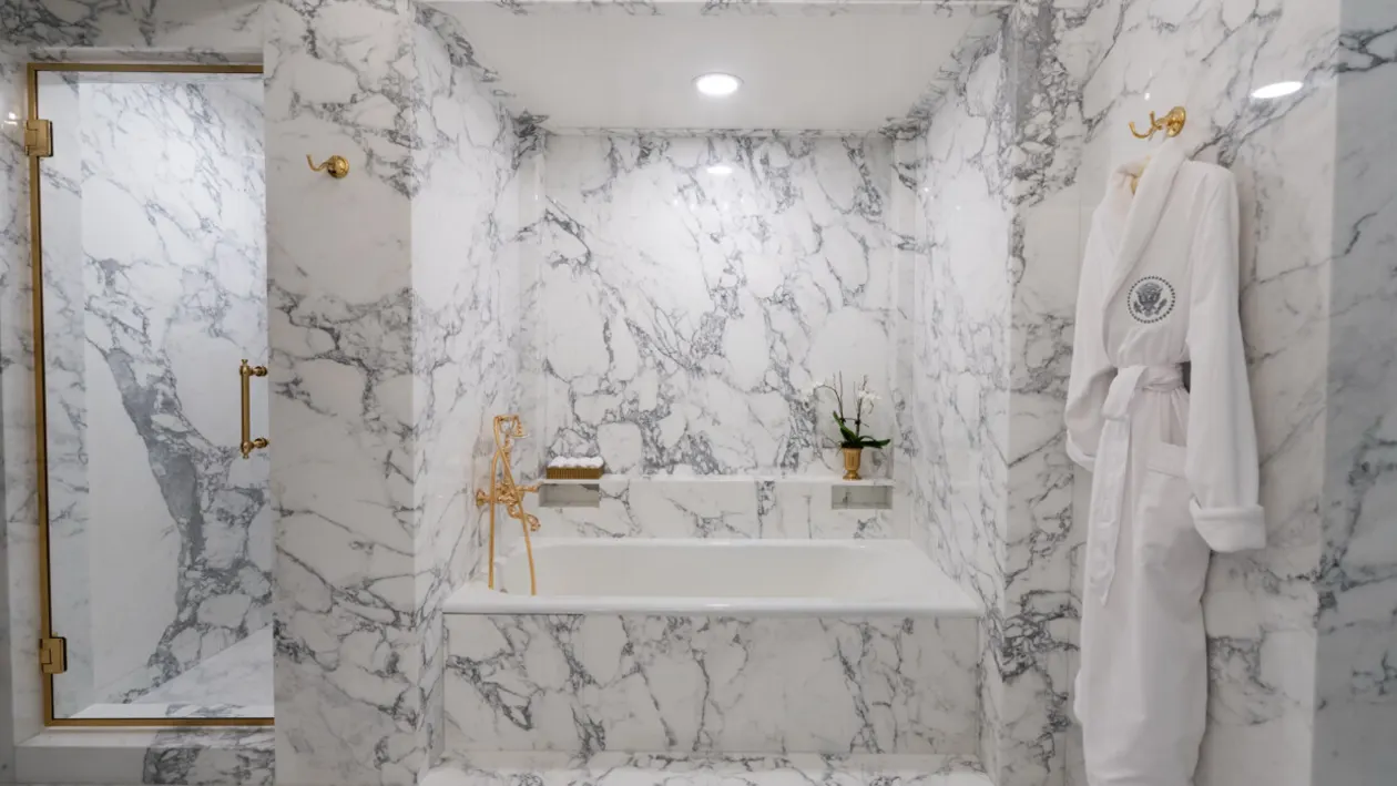 Президент Дональд Трамп поділився фотографіями відреставрованої ванної кімнати Лінкольна — тепер вона оздоблена мармуром від підлоги до стелі, повідомилo CNBC.