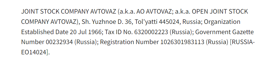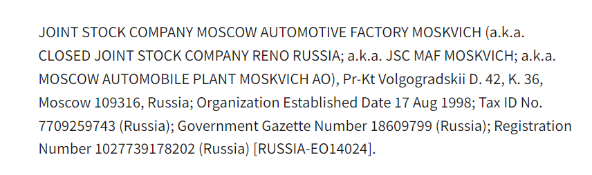 Серед російських компаній, що потрапили під санкції – автомобільні підприємства «АвтоВАЗ» та «Москвич».