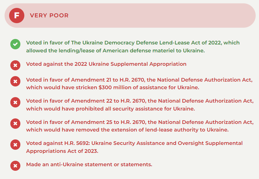 За даними групи «Республіканці за Україну», Джонсон має антиукраїнську позицію, оскільки він голосував позитивно для України лише за один з шести ключових законодавчих акта та робив антиукраїнські заяви. Він отримав оцінку від групи «Very poor» («Дуже бідно»).