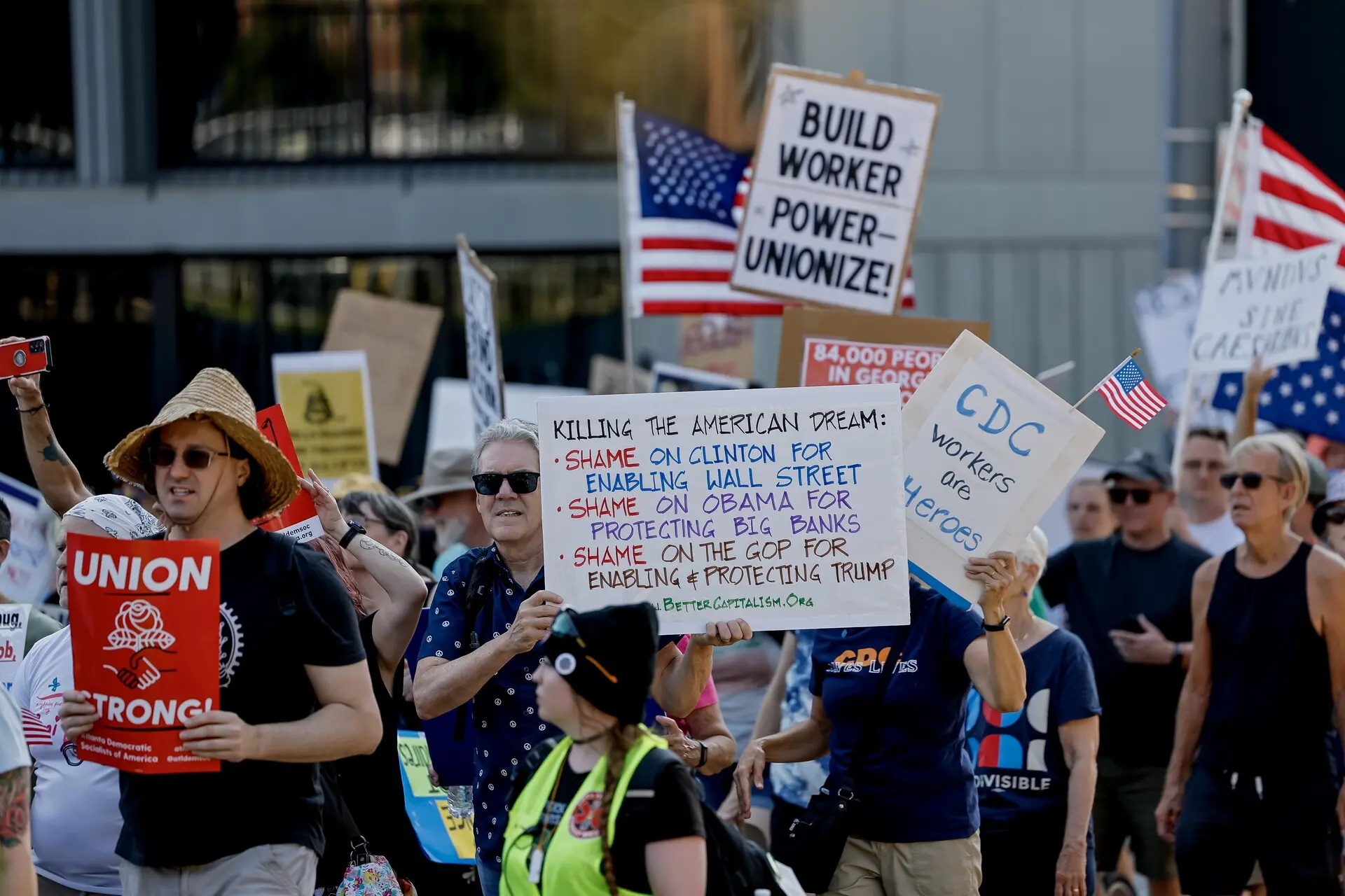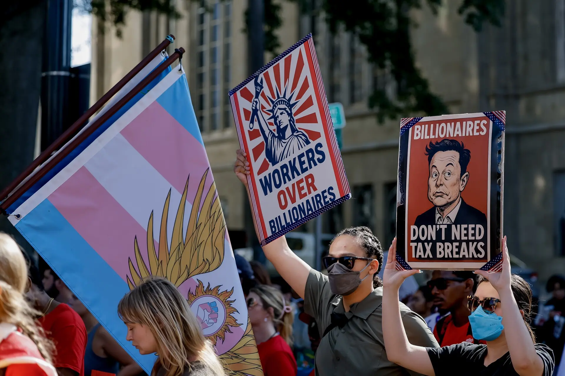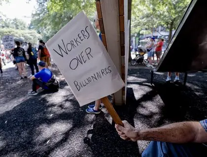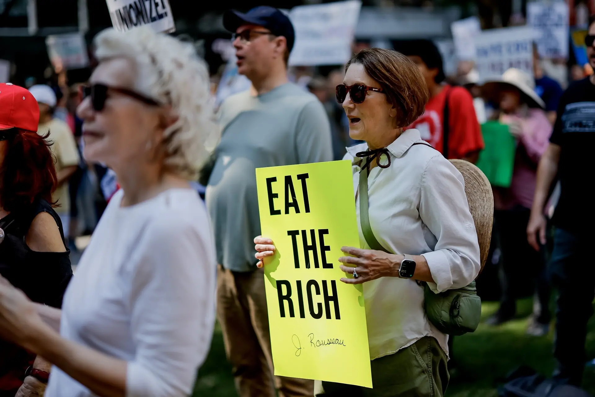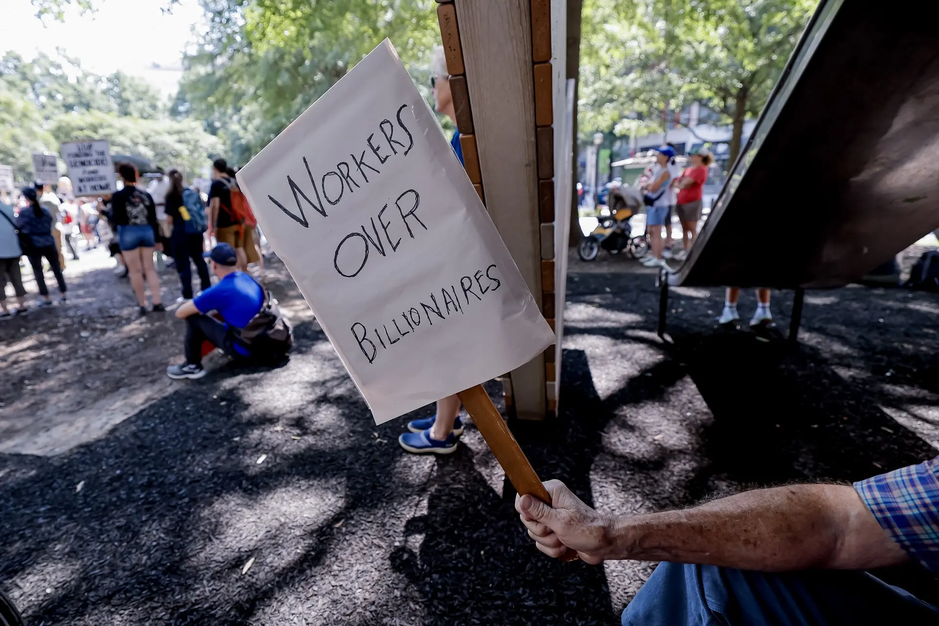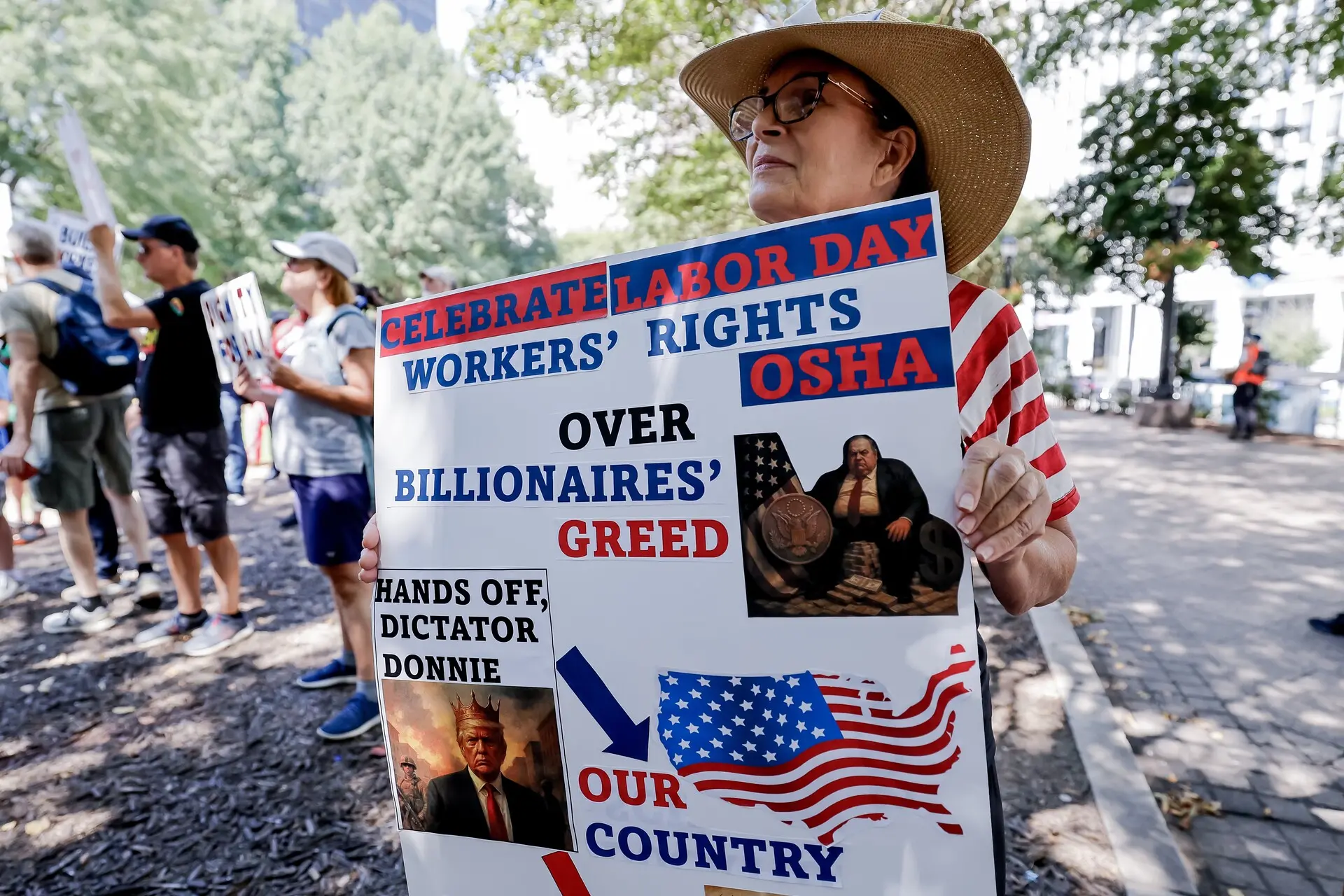 У понеділок, 1 вересня, у День праці, тисячі людей вийшли на вулиці міст по всіх США на протести проти американського президента Дональда Трампа та мільярдерів, повідомляє The Hill.