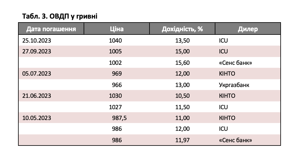 ОВДП — надійний і вигідний спосіб заощаджень. По-перше, навіть якщо Україна допустить дефолт, то стосуватиметься він її зовнішніх позик, внутрішні ж повертатимуть, бо здебільшого ці папери перебувають у портфелях НБУ та держбанків. Сенсу державі відмовлятися повертати кошти самій собі небагато. По-друге, поступово зростає дохідність ОВДП (див. табл. 3). По-третє, з отриманого доходу, на відміну від депозиту, вам не доведеться сплачувати податки в розмірі 19,5%. По-четверте, дохідність ОВДП гарантовано продовжить зростати і після завершення гарячої фази війни, оскільки потреба держави у коштах не зникне, а от вторинний ринок ОВДП, який закрили 24 лютого 2022-го, повернеться до роботи.