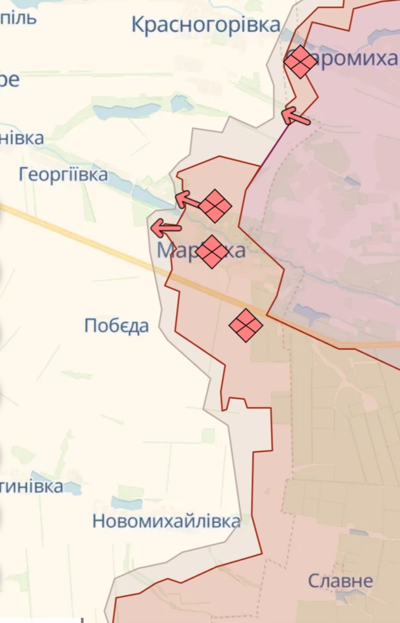 На мар'їнському напрямку росіяни наступали біля Красногорівки, Мар'їнки, Перемоги та Новомихайлівки — відбито 24 атаки.