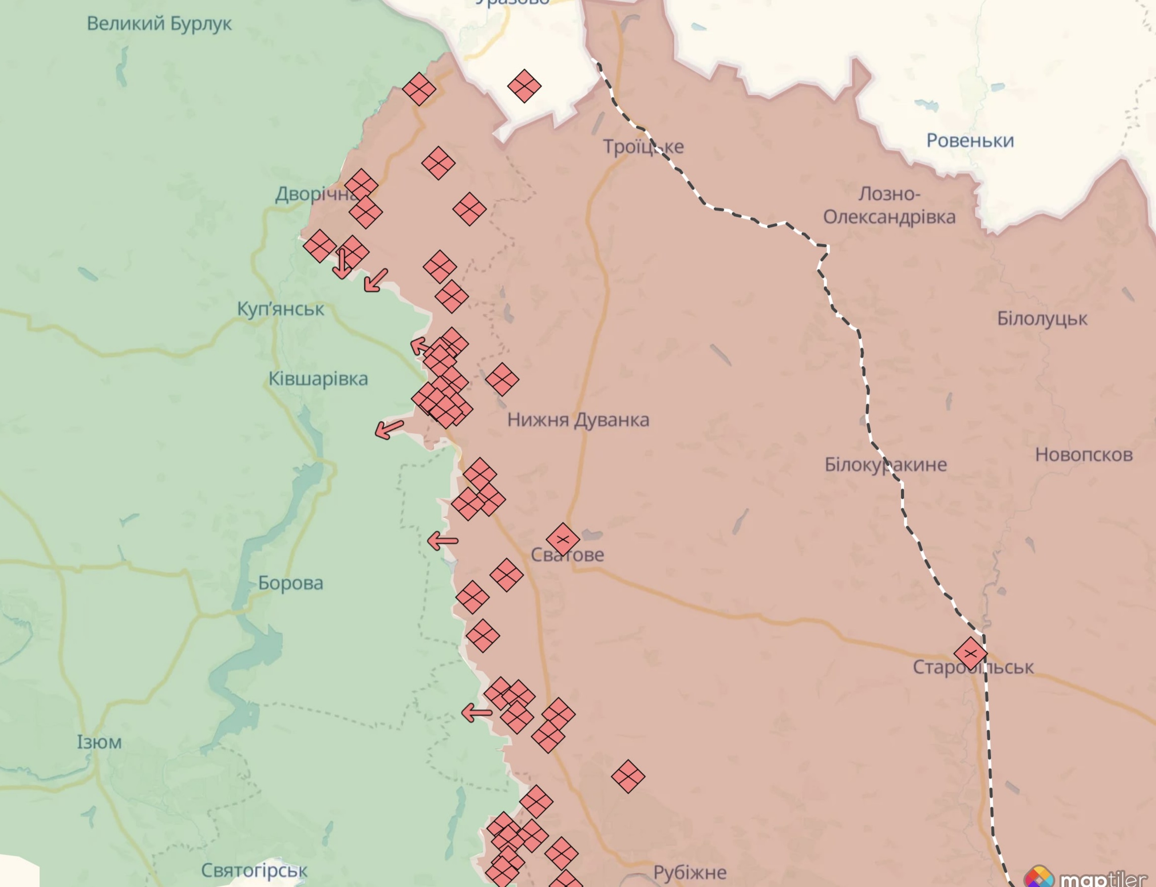 "Однак це їм не вдається. А коли ворогу це не вдається, тоді спостерігаємо емоційні дії з боку росіян. Тобто вони починають бити по населених пунктах за Осколом. Потерпають Петропавлівка, Синьківка, Куп'янськ та навколишні села. Війська РФ б'ють КАБами та артилерією", - зазначила речниця.
