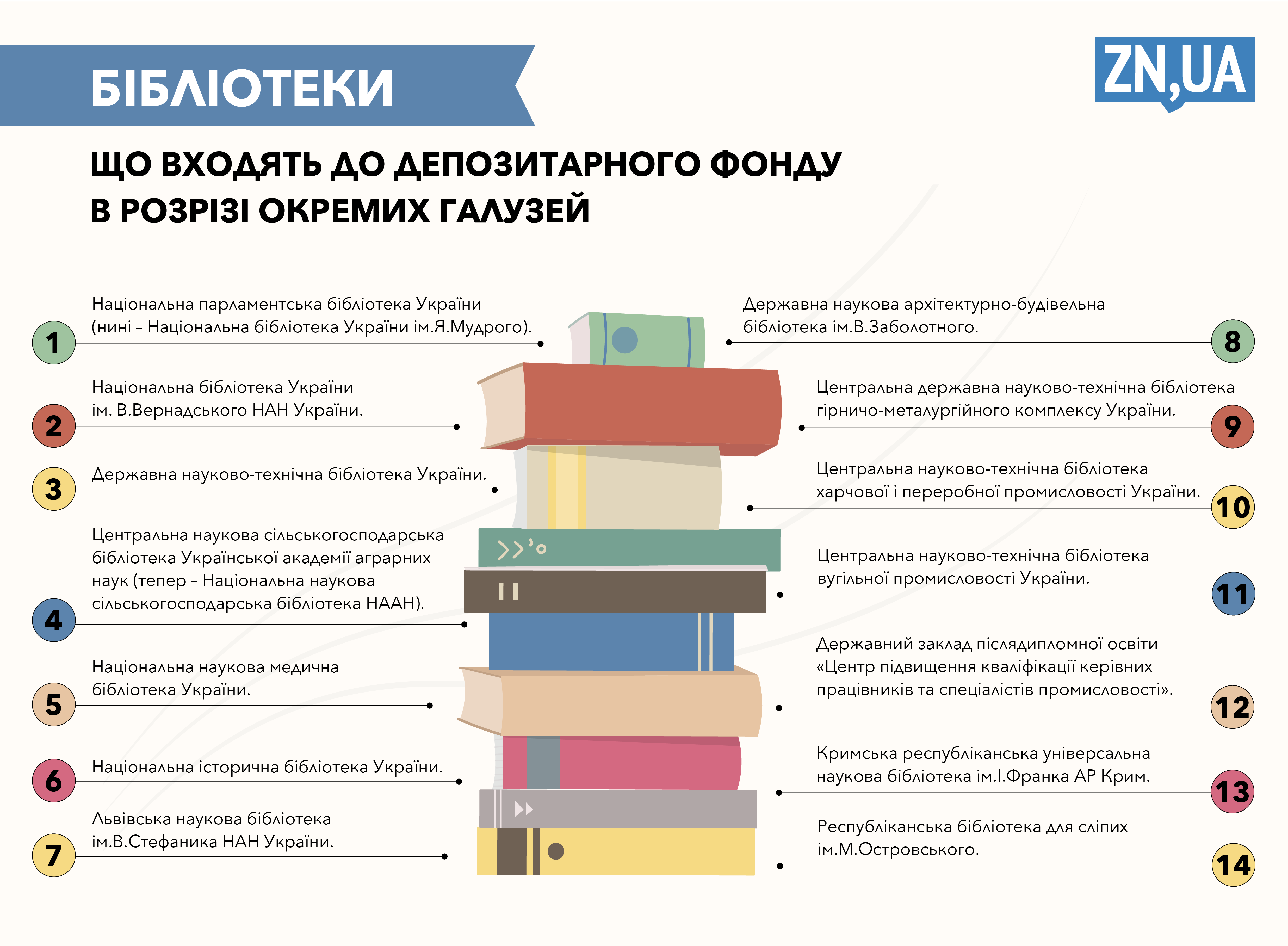 У період розквіту радянської доби з її безпрецедентною плановістю, включно зі стимулюванням книговидавництва, в Україні просто не встигали будувати нові приміщення бібліотек, а зберігати книжки було потрібно. З цією метою й скористалися світовим досвідом депозитарного зберігання книжок через відповідне урядове рішення, визначивши конкретні бібліотеки-депозитарії на рівні конкретних галузей. Їх, відповідно до урядової постанови, було пристосовано до УРСР і затверджено в кількості 14. Саме така кількість у часи державності була підтверджена спеціальним наказом Мінкультури (як законодавчого головного відомства країни для бібліотечної галузі) у вигляді «Положення про систему депозитарного зберігання бібліотечних фондівУкраїни».