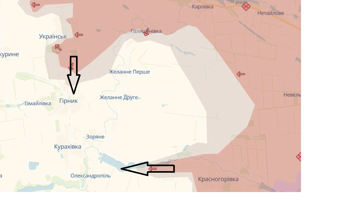 Як можемо бачити, селища Желанне Перше, Желанне Друге, Гостре та місто Гірник розташовані в низині відносно тих позицій, де зараз атакують ЗС РФ. Попри перебування на цьому напрямку досвідчених і загартованих у боях 59-ї та 68-ї бригад ЗСУ військові прямо кажуть, що їхніх сил не вистачає проти противника, який значно переважає за кількістю живої сили та засобів ураження.