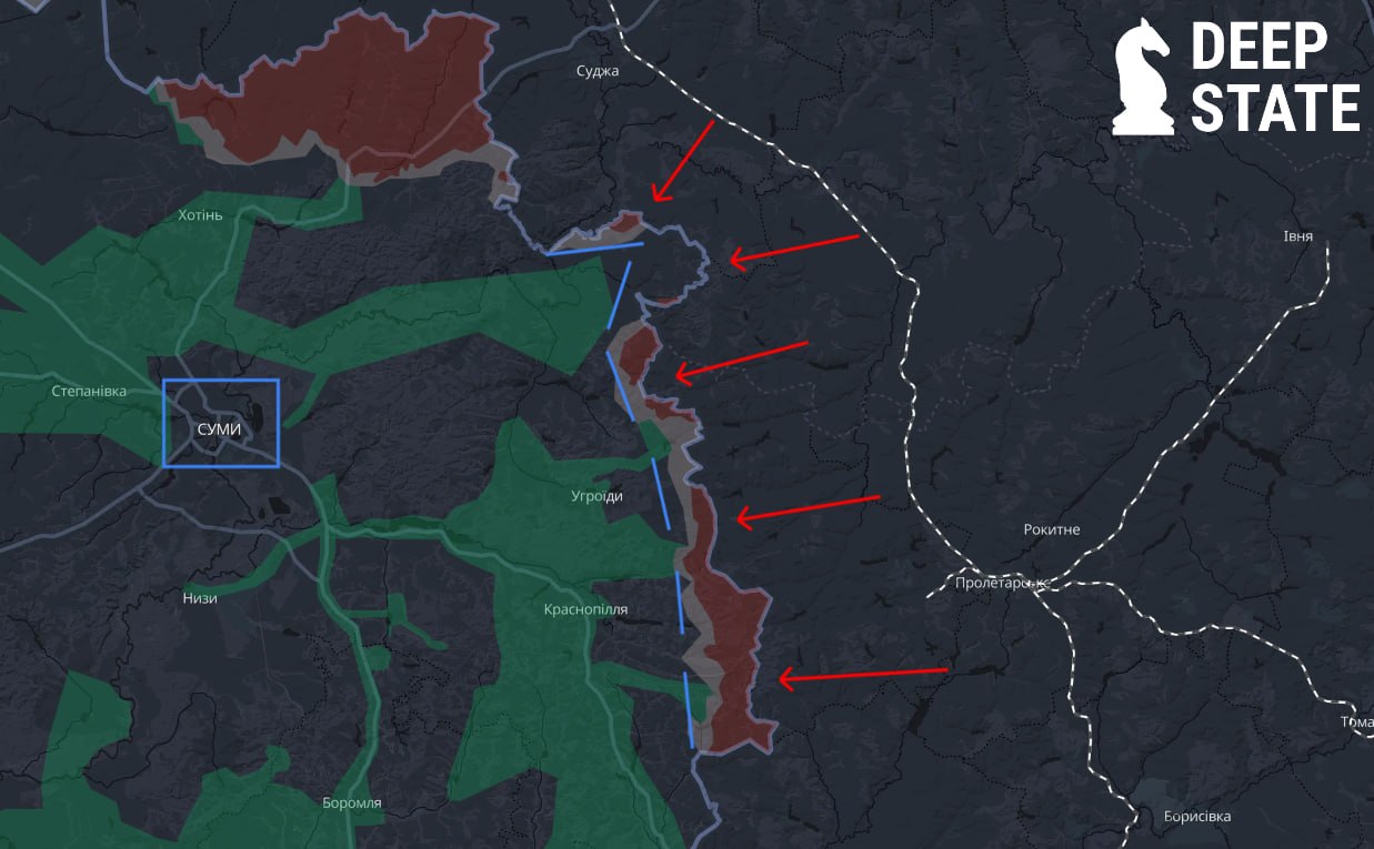 Інформація, яку поширюють у соцмережах, щодо загрози "оточення" чи "напівоточення" з боку російських військ міста Суми не відповідає дійсності, заявили аналітики DeepState.