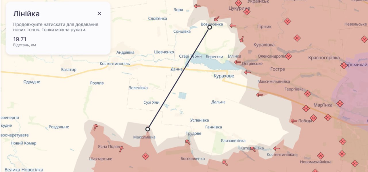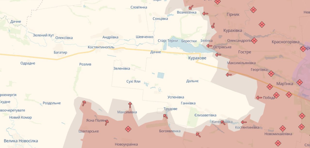Отже, Курахове опинилося в напівоточенні вже за 7–10 днів. Із цього випливає й відповідь на запитання, чому росіяни припинили рухатися в бік Покровська напряму, коли до міста їм залишилося менш як 5 кілометрів. Ворог цілком логічно зробив ставку на наступ у місцях, де можна не «битися в лоб» об декілька ліній оборони ЗСУ, водночас утілюючи свою фантомну мрію про окупацію всієї Донеччини та пробиваючись до кордону з Дніпропетровщиною. Варто зазначити, що до неї в окремих місцях залишилося вже менш як 20 кілометрів. А до «закриття» Курахового в оточення з півночі та півдня — 18 кілометрів.