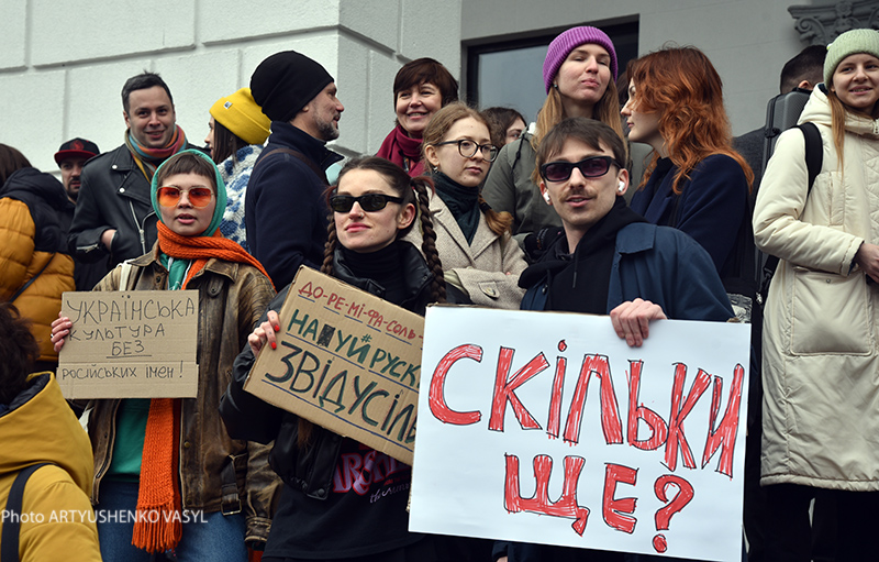 Доки колектив київської Національної музичної академії України (НМАУ) відкладає питання вилучення імені композитора Петра Чайковського з назви, за два тижні березня 2023 року із закладу за власним бажанням звільнилися авторитетні викладачі. 16 березня на Майдані відбулася мирна акція незгоди з іменем російського композитора в назві Академії.
