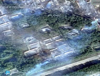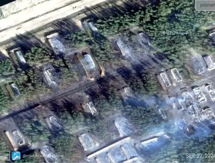 На фото видно, що над складами, по яких вдарили Збройні Сили України спільно з СБУ, вже розвіявся дим. За словами OSINT-дослідника, значних пошкоджень зазнала північна частина арсеналу. Знищені або дуже пошкоджені понад 58 складських будівель та відкритих майданчиків.