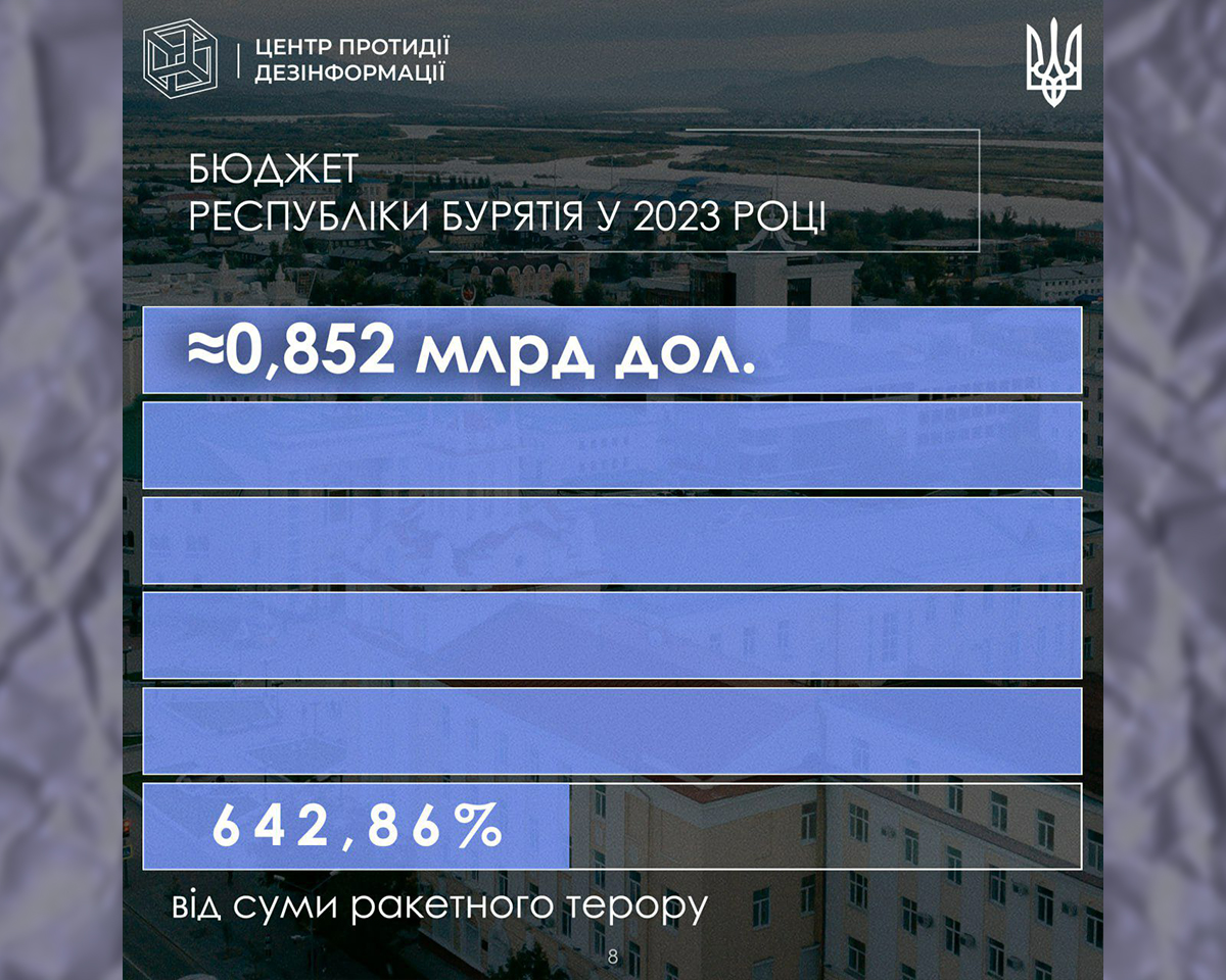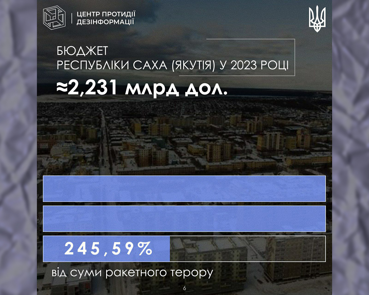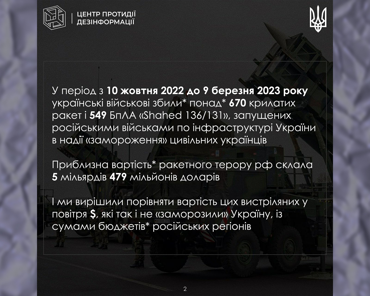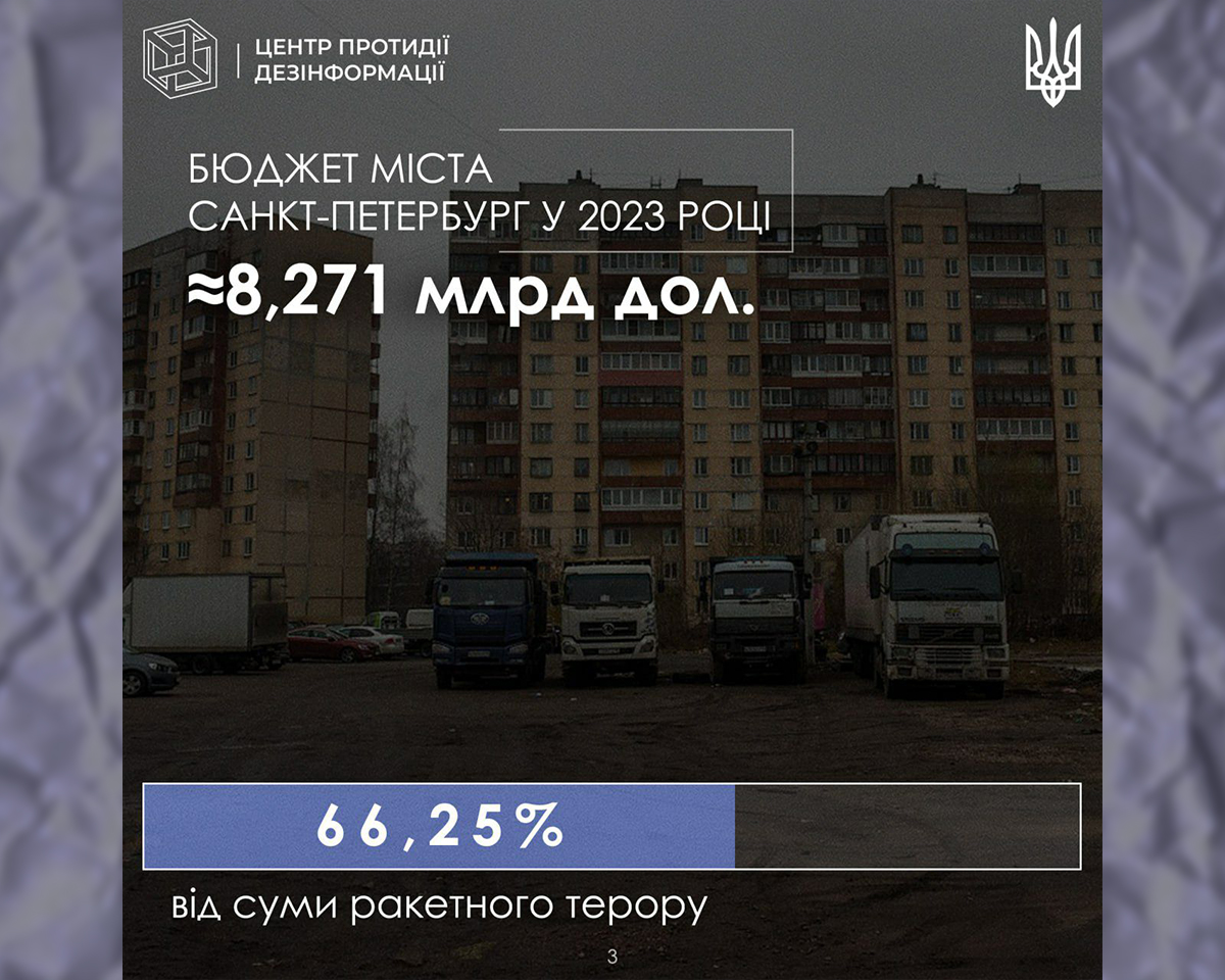 "Водночас річні бюджети цілих регіонів Росії часто в десятки чи навіть сотні разів нижчі вартості ракетного терору", — йдеться у повідомленні.