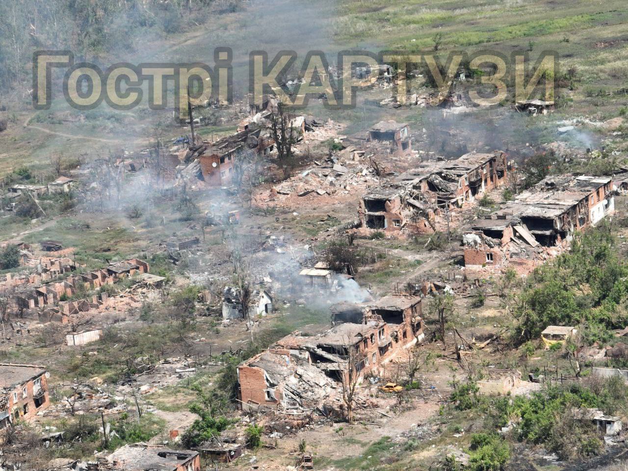 На фото видно наслідки російської агресії та серйозні руйнування селища.