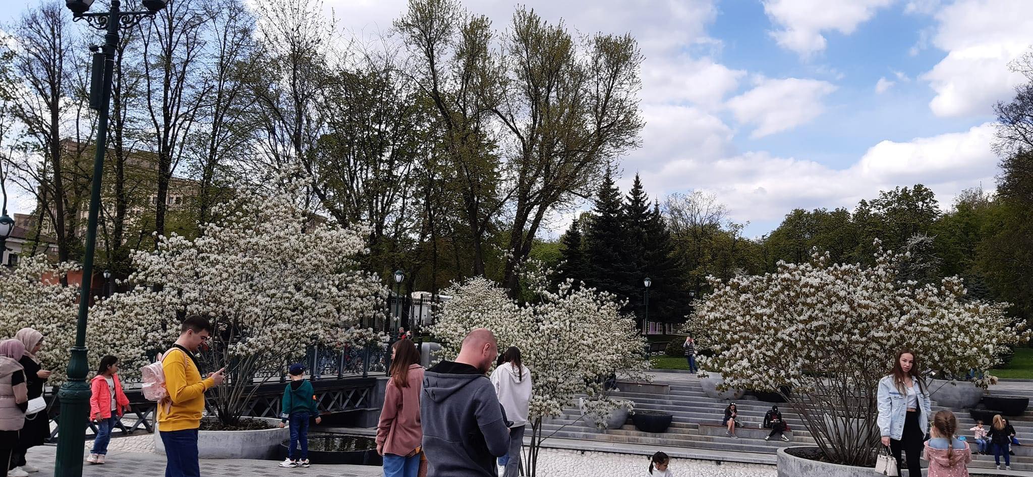 Потяг харків'ян, особливо чиновників, до різного роду рослинності відомий давно. Вечорами городяни гуляють по набережній, або в парку Шевченка, або в Саржиному яру. Там зараз усе квітне й пахне. Навіть каріоптеріс, кущі якого, згідно з повідомленням міськради, озеленювачам подарувала мешканка міста Богодухів. Цвітуть і сакури, які садили під обстрілами.