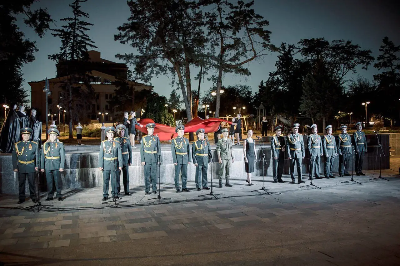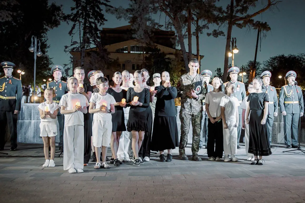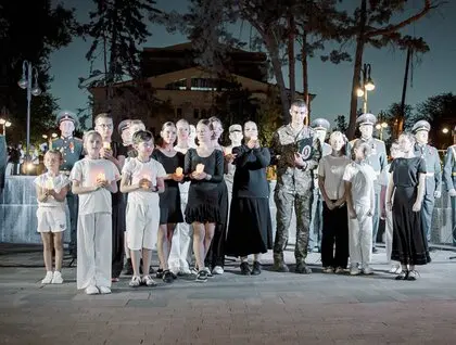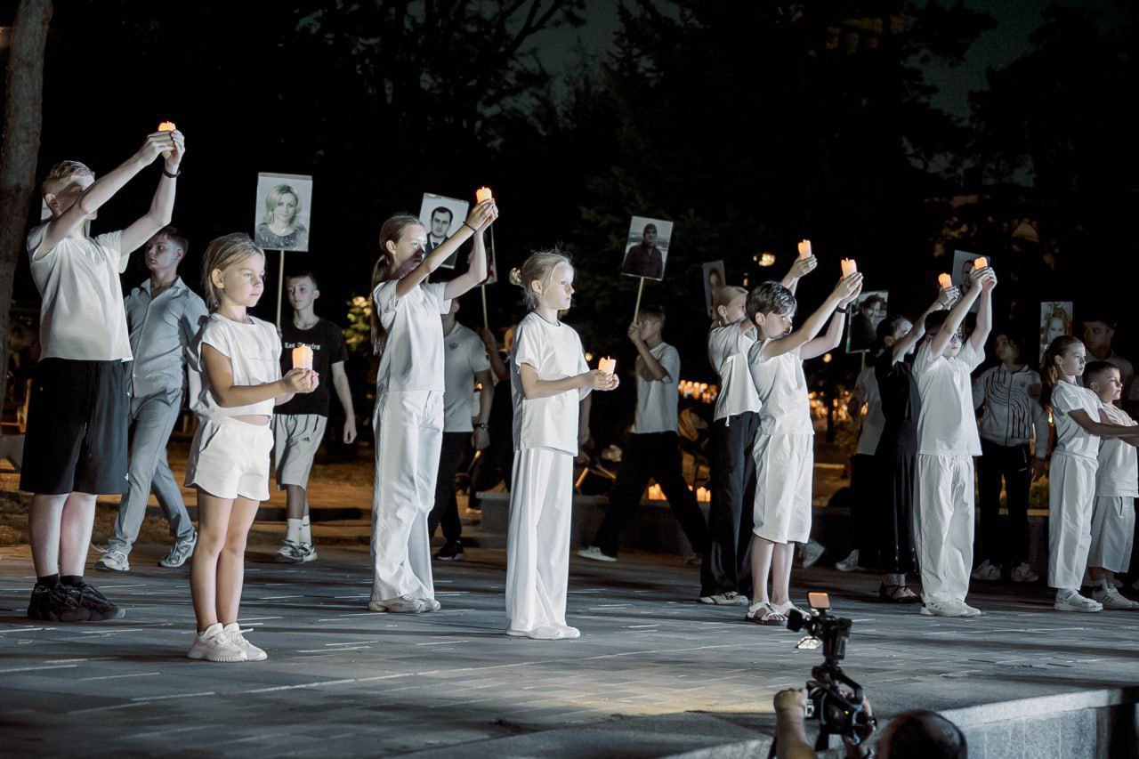 Участь у заході взяли представники окупаційної влади. За словами заступниці голови адміністрації Маргарити Полуніної, це був «день скорботи, пам’яті та надії». Організатори підкреслили, що місце обрали «не випадково». Перед театром встановили сцену, розставили свічки та виголосили офіційні промови.